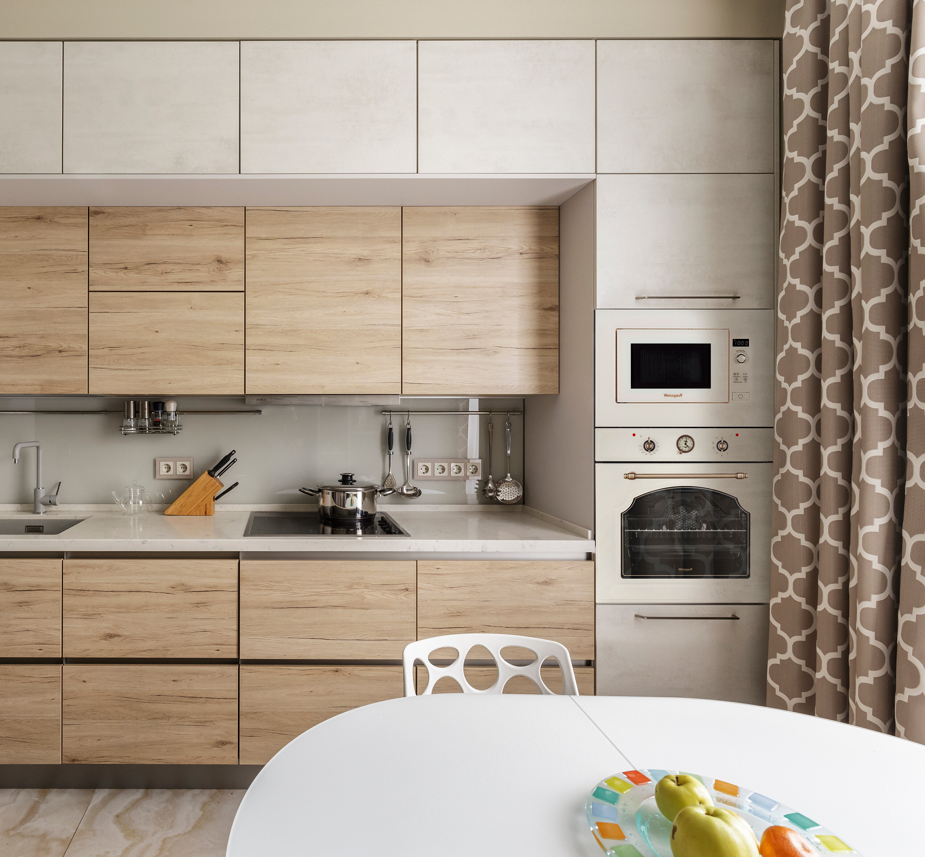 | Плюсы: | - Дизайн. Очень красивая микроволновка, сидим теперь на кухне и не можем отвести от нее взгляд, цвет такой "вкусный", стильный. Вся техника на кухне цвета слоновой кости (бежевый, ivory, как-то так), поэтому при выборе встроенной микроволновки были ограничены выбором по цвету, эта вписалась очень гармонично.