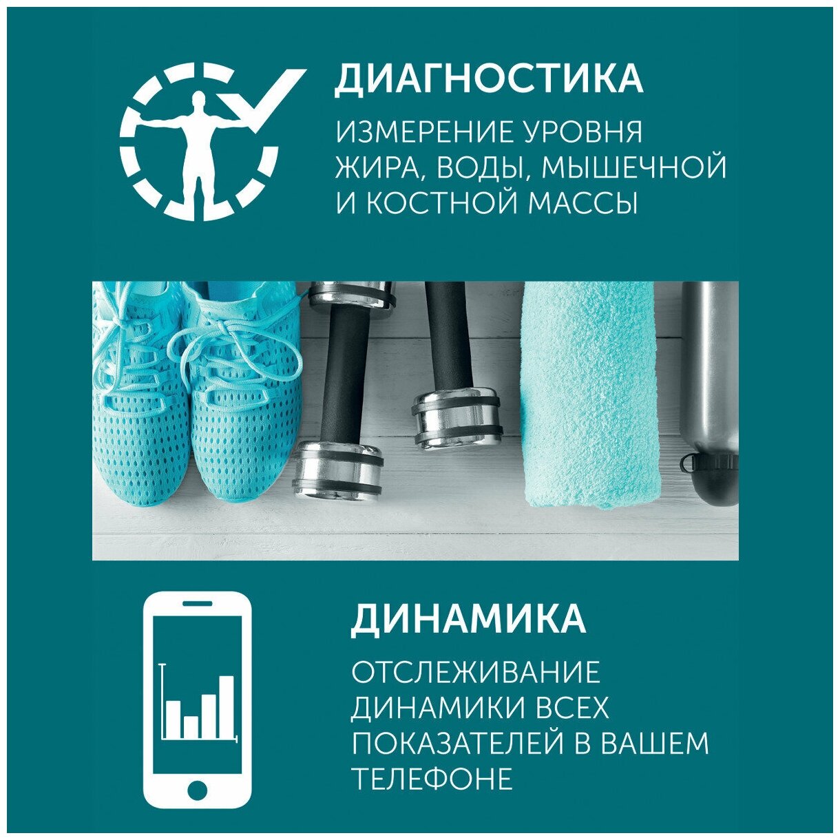 | Дополнительные функции | определение доли жировой ткани / определение доли мышечной ткани / определение доли воды / определение доли костной ткани / расчет ИМТ (BMI) / память |