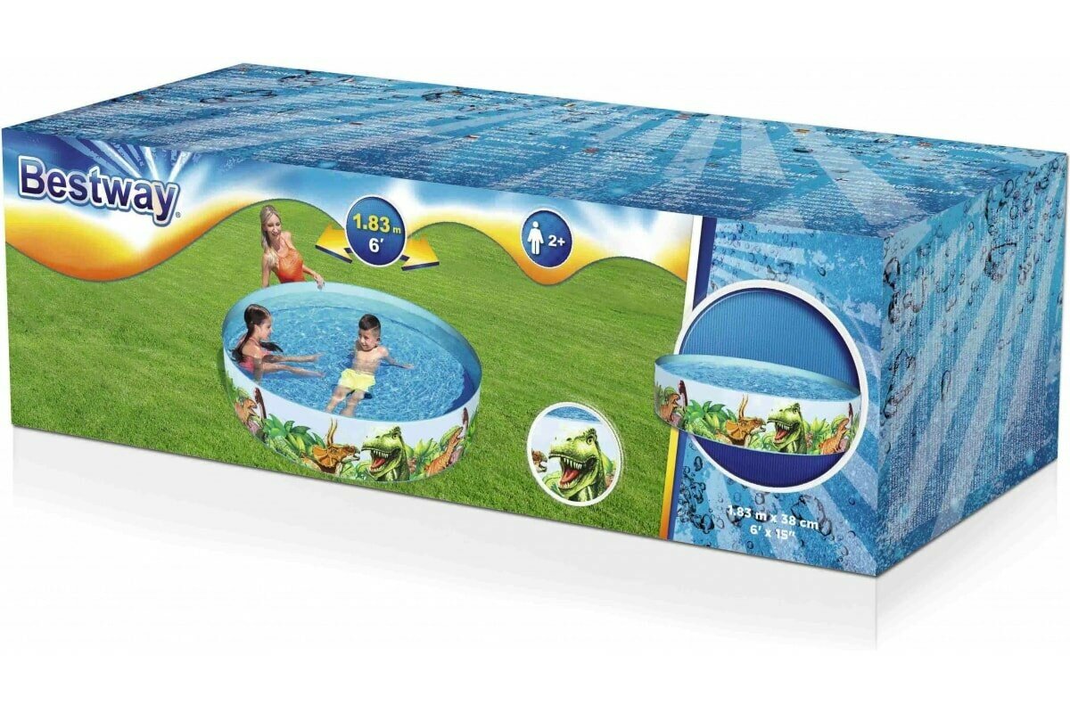 Бассейн «Динозавры», жёсткий борт, 183 х 38 см, от 2 лет, 55022 Bestway