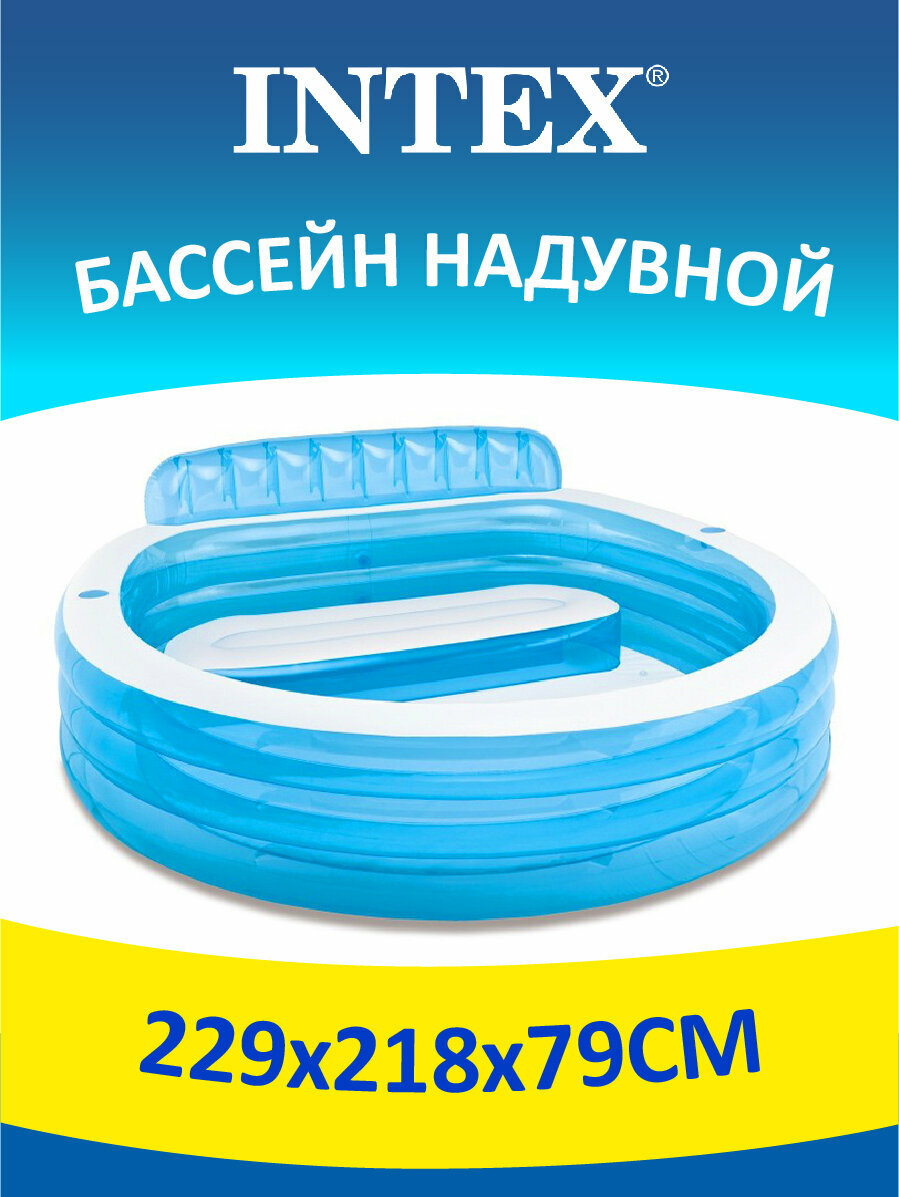 Бассейн надувной Intex Семейный с сиденьем и спинкой 224х216х76см .