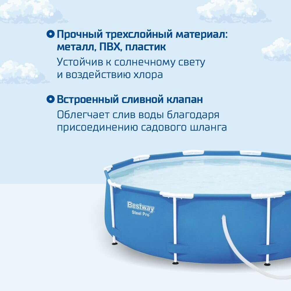 Каркасный бассейн Bestway Steel Pro 56679, 305х76 см (фильтр)