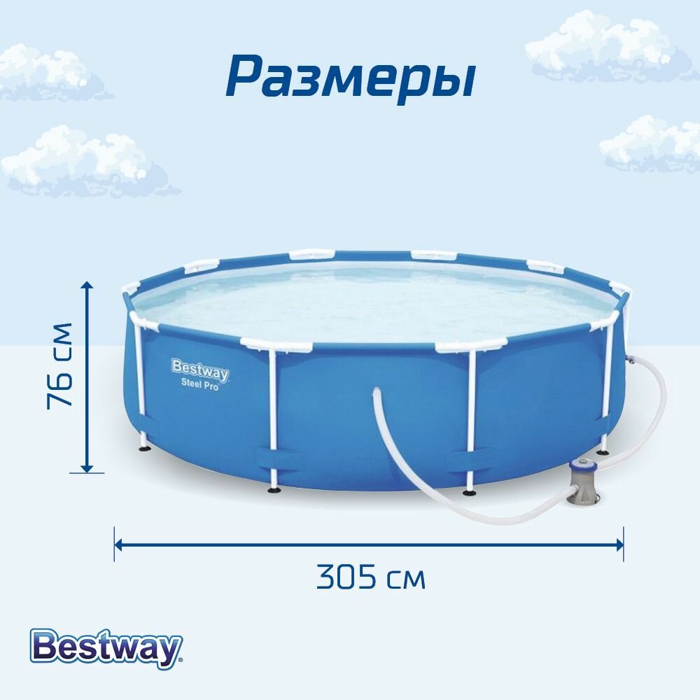 Бассейн Bestway, каркасный, размер 305 х 76 см, фильтр-насос, 56679, цвет голубой