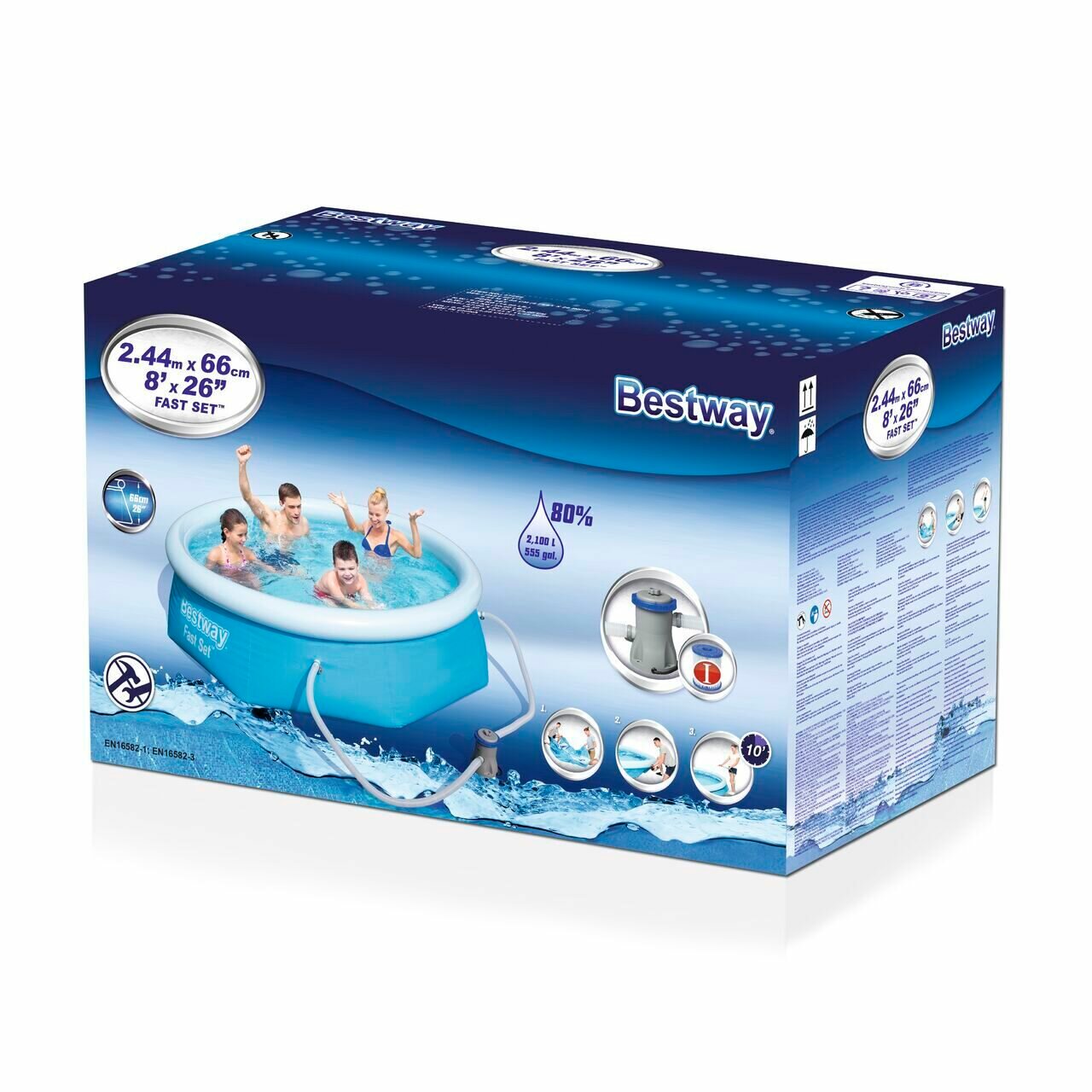 Надувной бассейн Fast Set, 244х66 см + фильтр-насос 220 В, BESTWAY (57268)