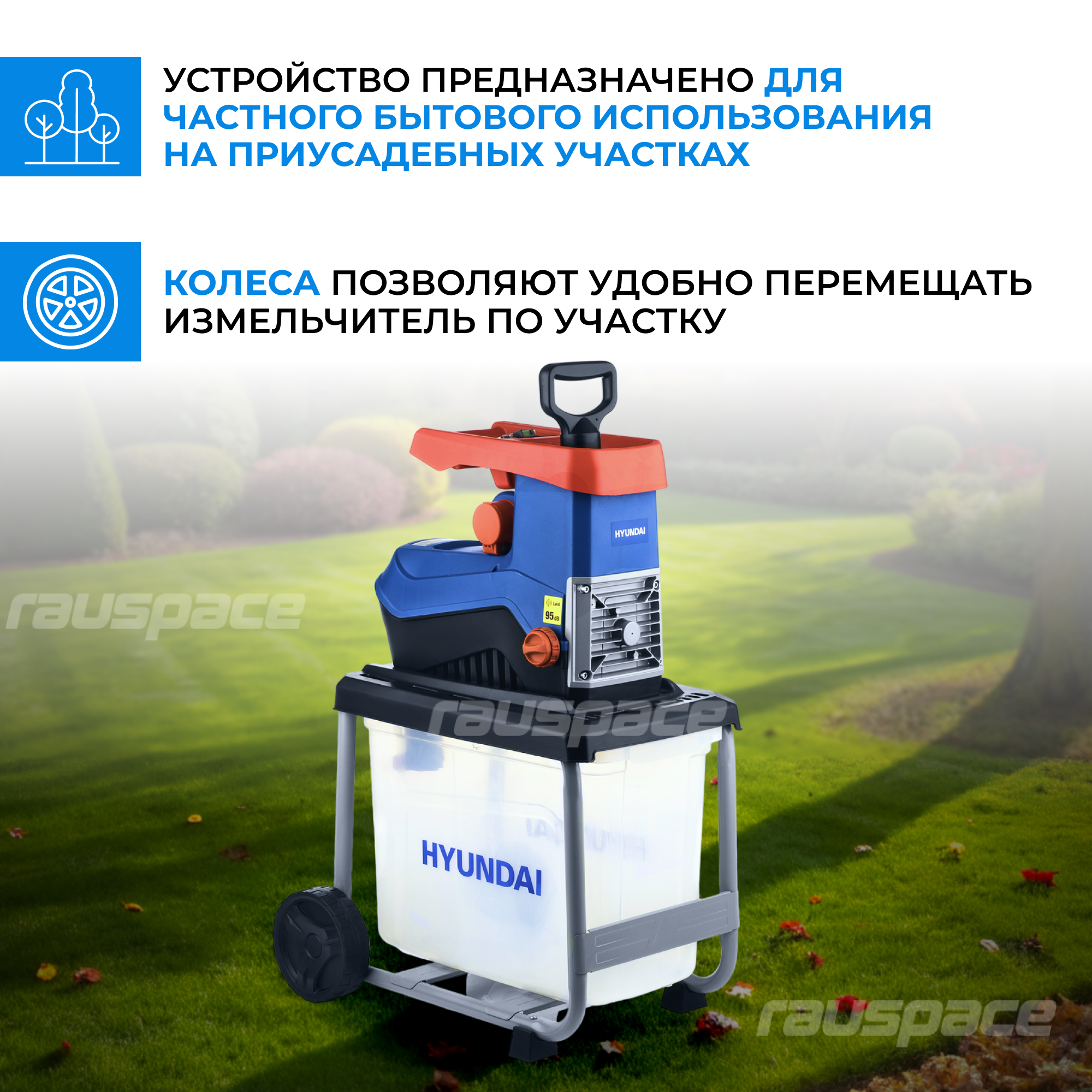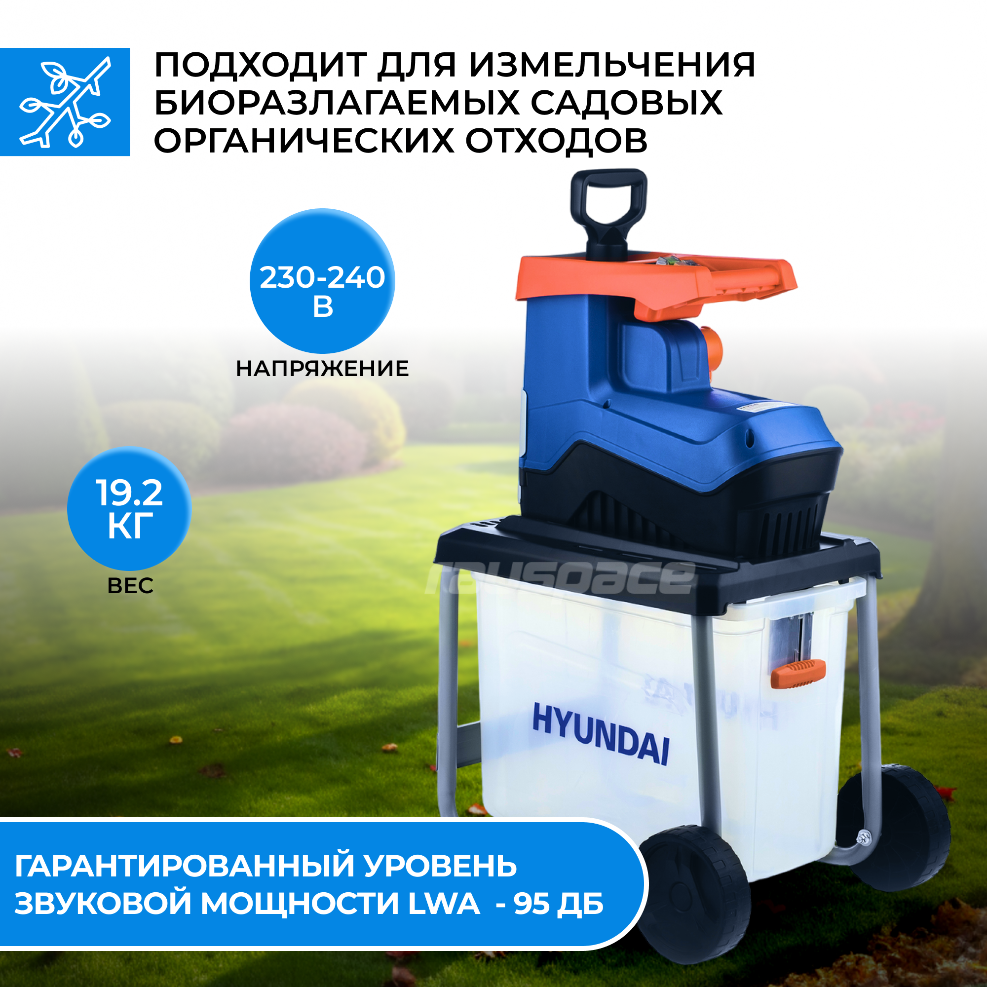 Электрический садовый измельчитель Hyundai HYCH 2800/ 2800 Вт/для измельчения листьев и веток
