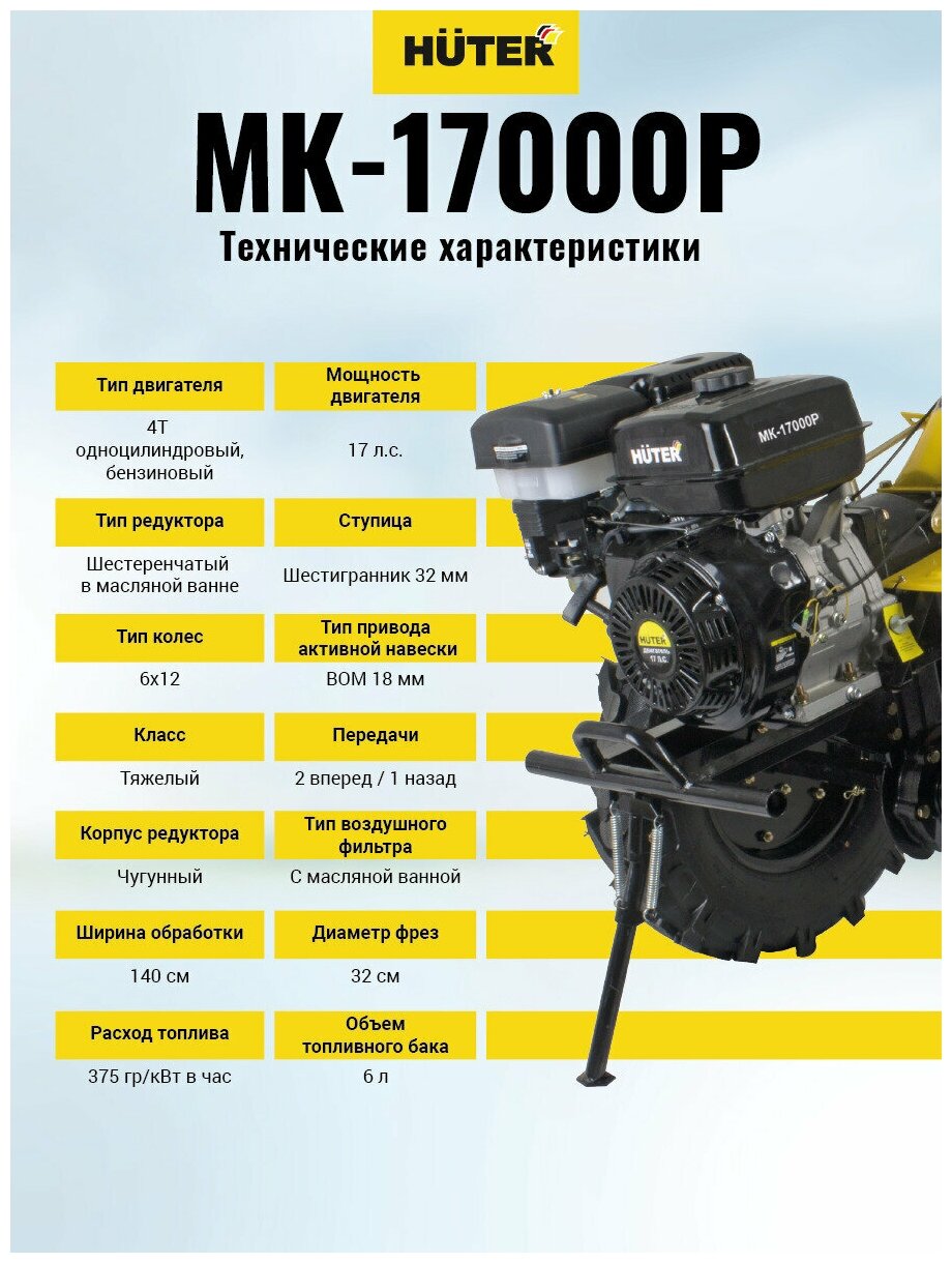 Ниже Вы можете прочитать отзывы на Мотоблок Huter МК-17000P (70/5/31), ознакомится с подробными характеристиками, посмотреть интересные обзоры и фотографии на Мотоблок Huter МК-17000P (70/5/31).