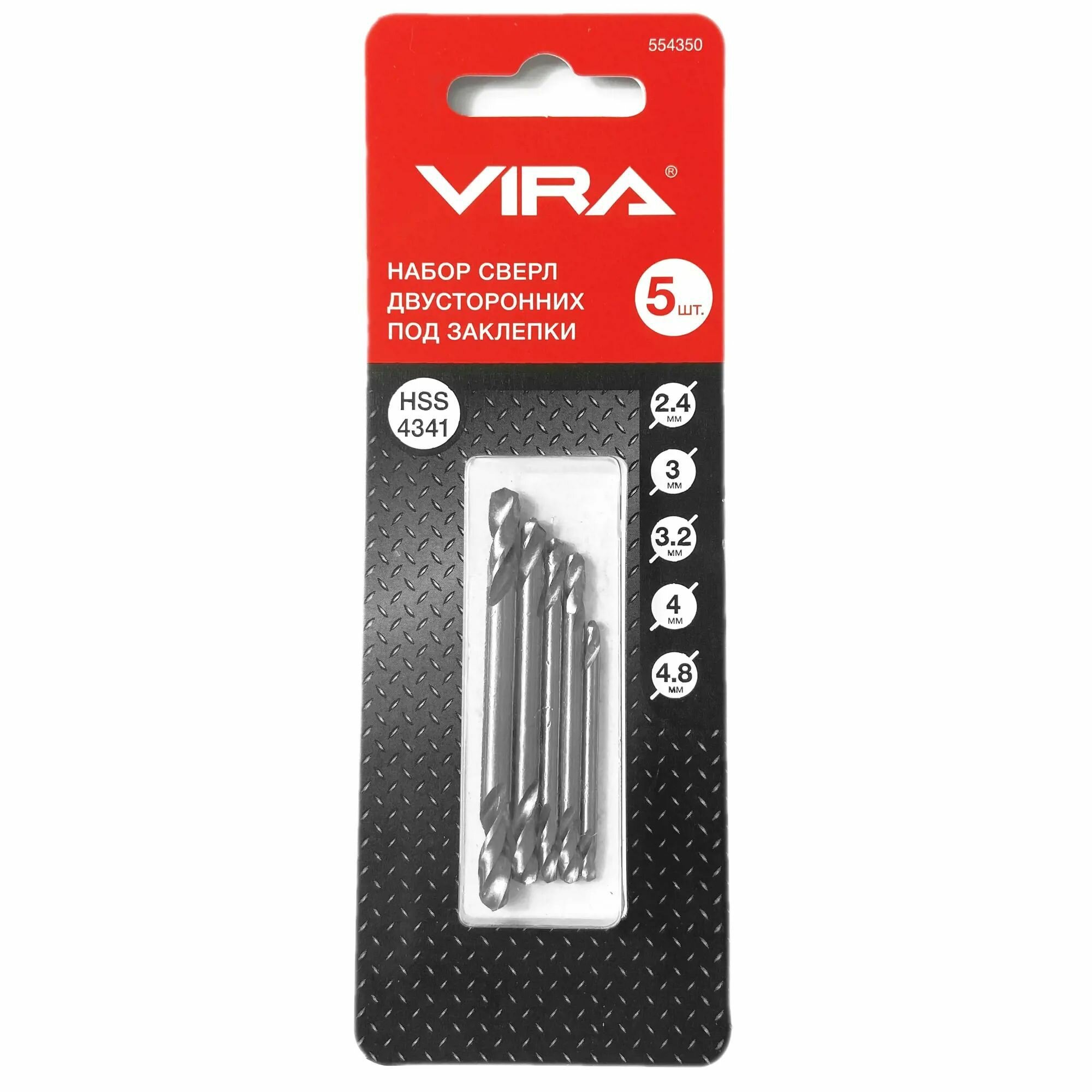 | Дополнительная информация | Набор свёрл VIRA двусторонних под заклёпки 2,4-4,8мм |