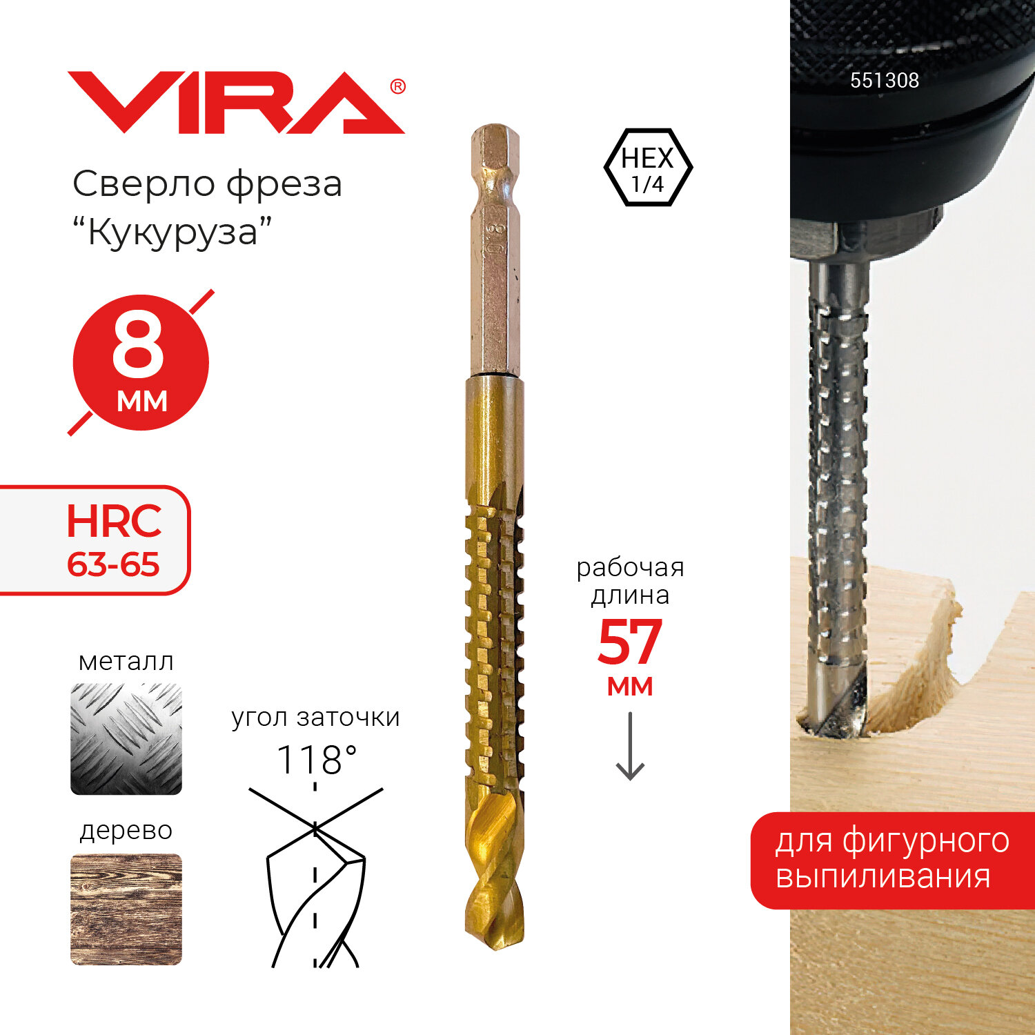 Сверло-фреза Кукуруза 8 мм 1/4HEX-E VIRA 551308 интересное: