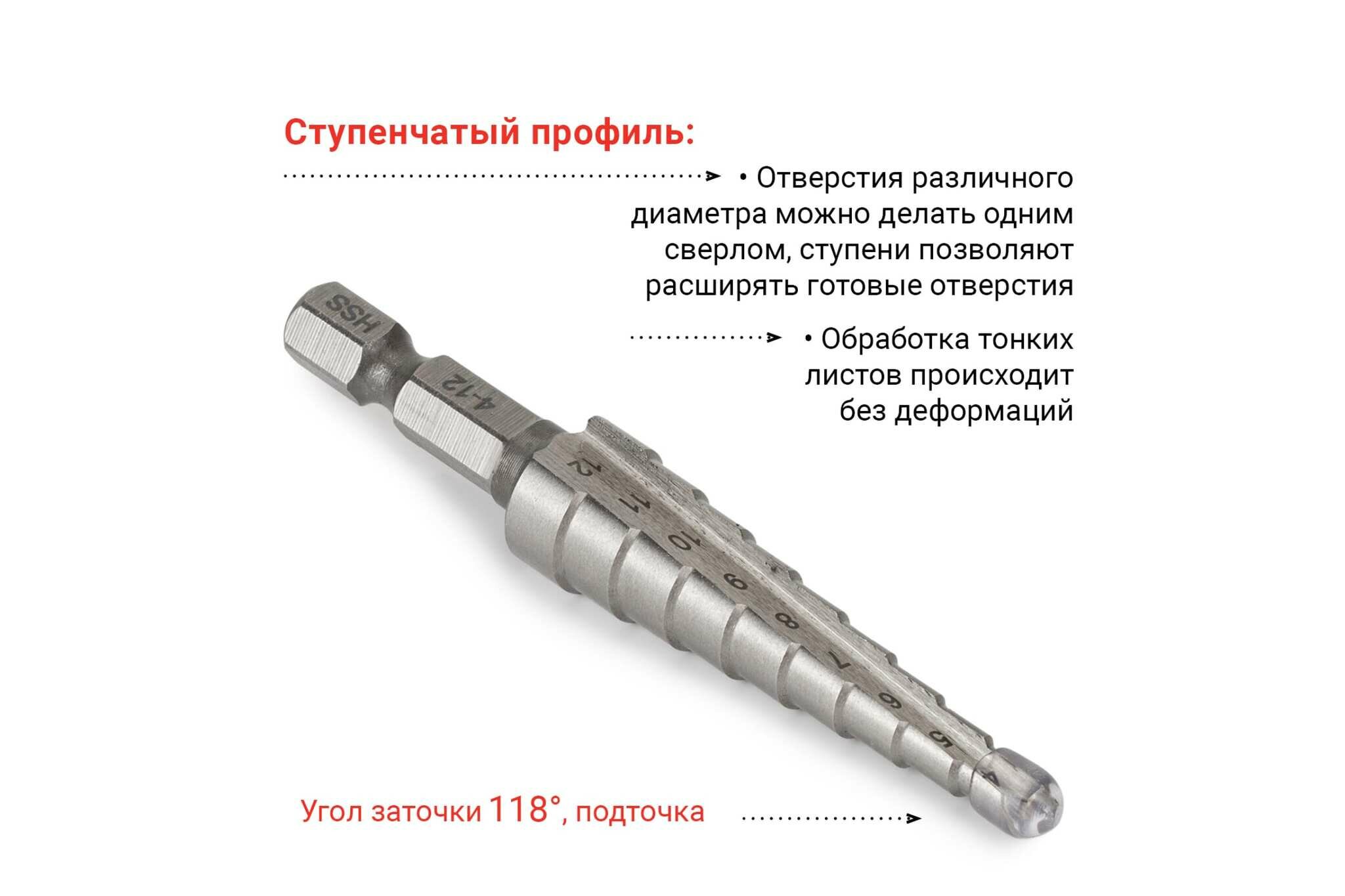 | Количество ступенчатых сверл | 1 шт. |