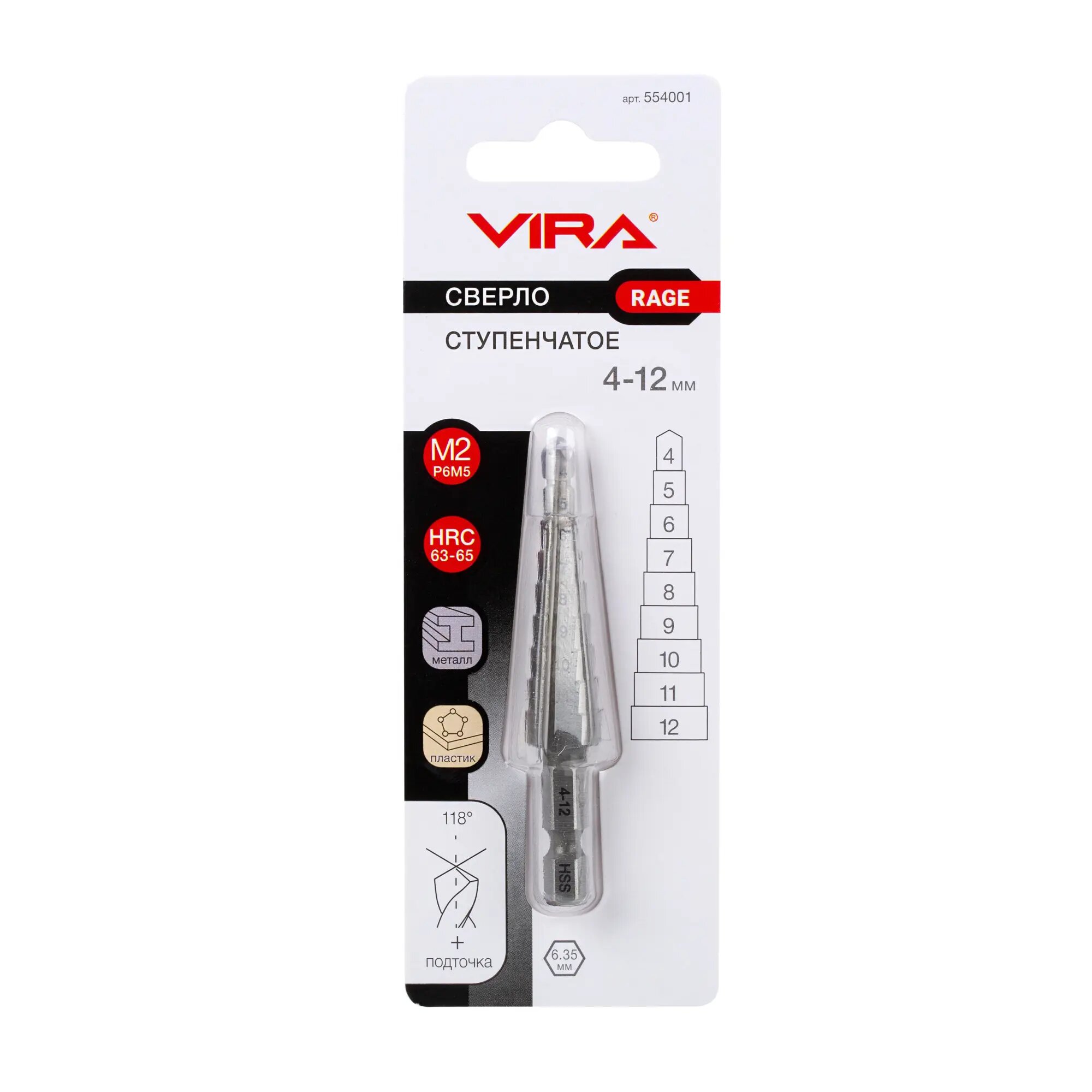 Сверло ступенчатое по металлу (4-12 мм; шестигранный хвостовик) VIRA RAGE 554001 интересное: