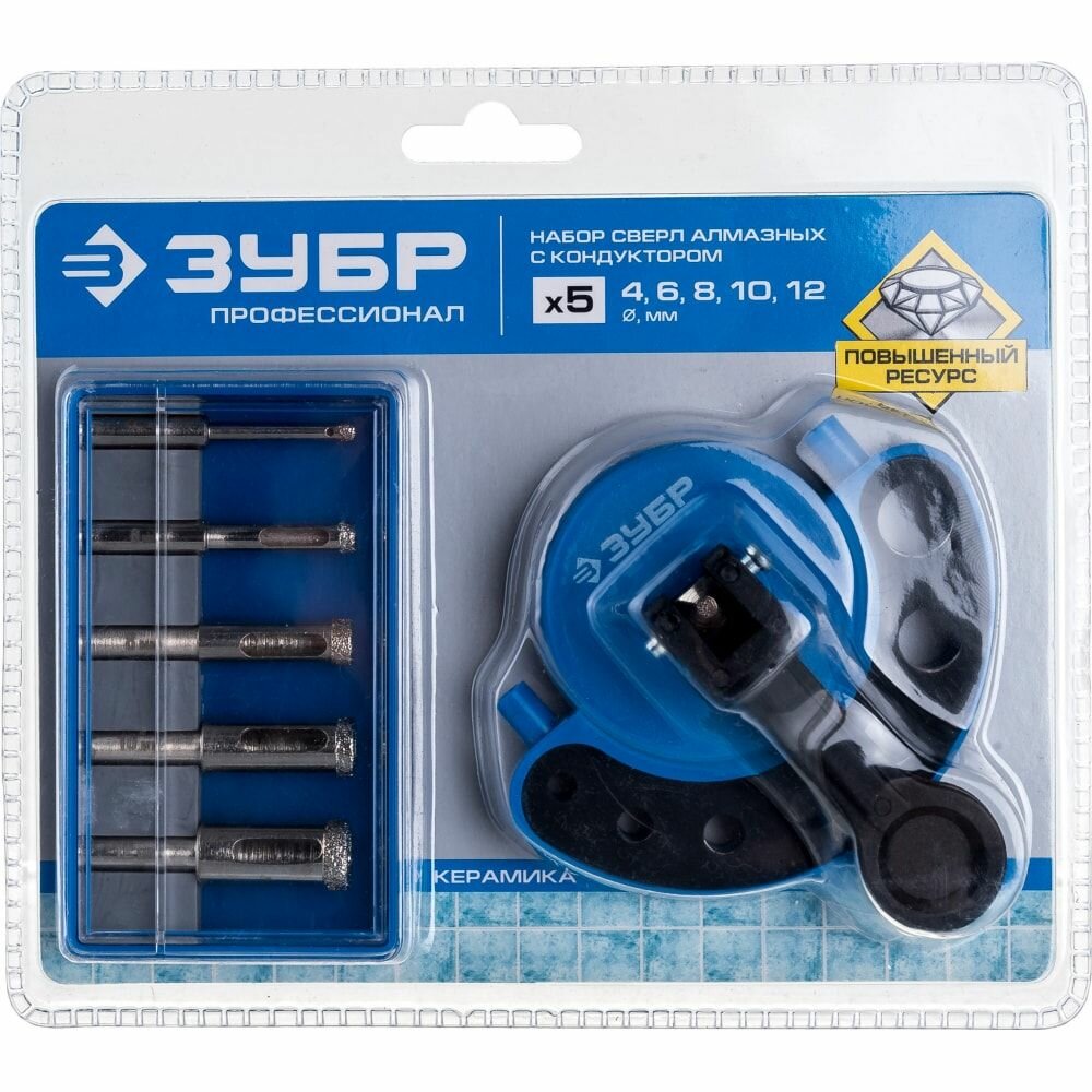 ЗУБР Ø 4-12 мм, Р 60, 5 шт., набор сверл алмазных трубчатых по керамике с кондуктором 29851-H6 Профессионал