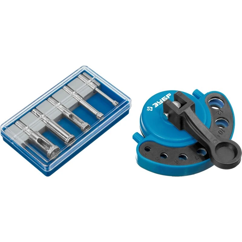 Набор сверл алмазных трубчатых с кондуктором по кафелю и стеклу d 4, 6, 8, 10, 12 мм, Р60, ЗУБР Профессионал (29851-H6)