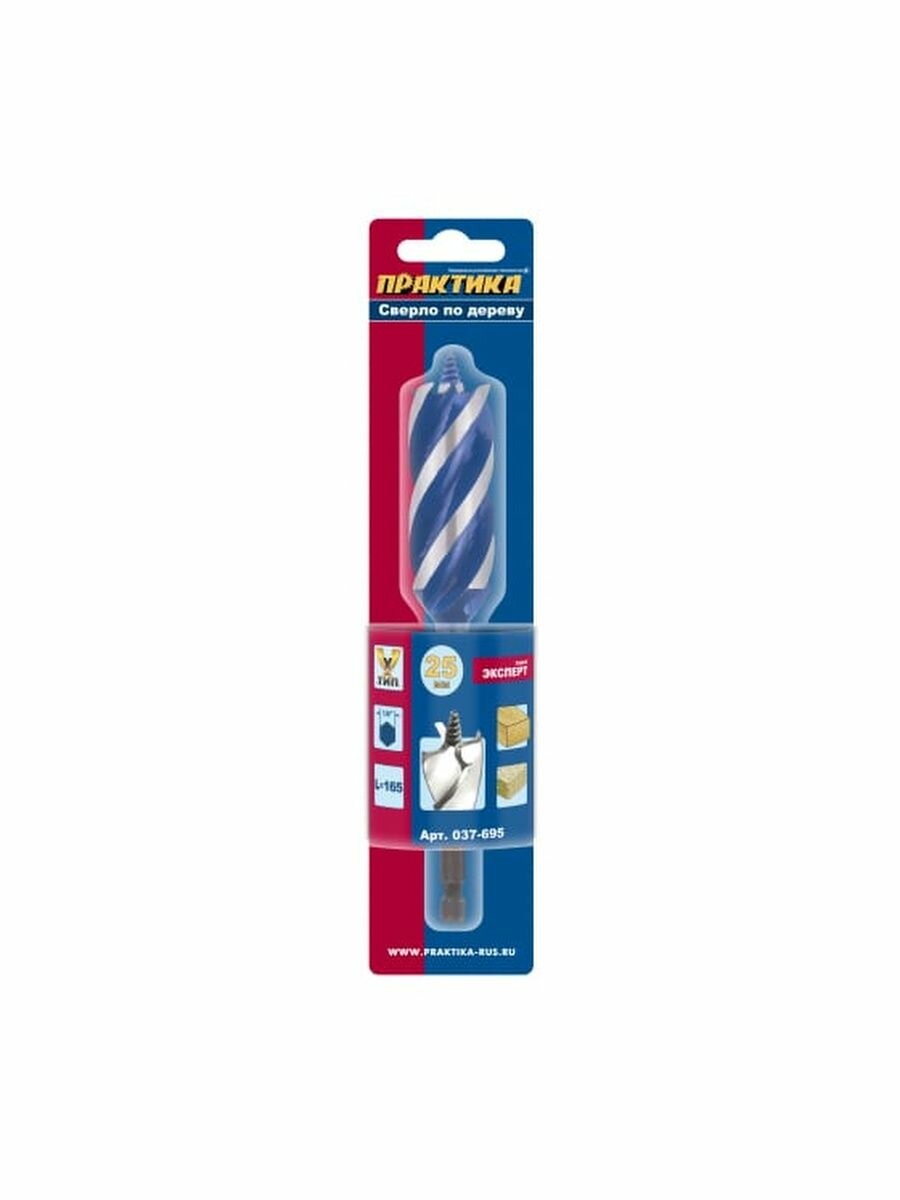 Практика Сверло 3-х заходное по дереву 25x165мм в блистере 037-695 .