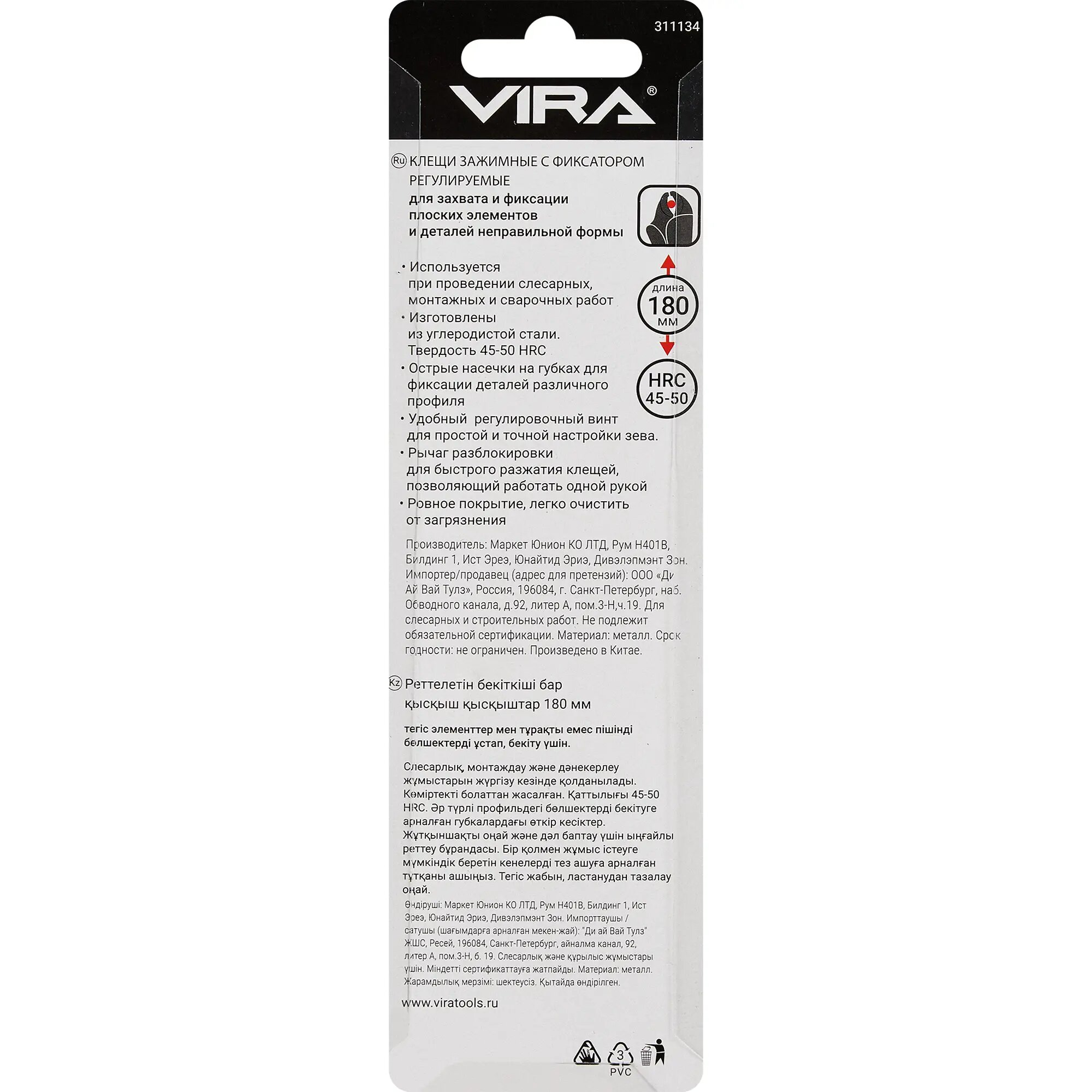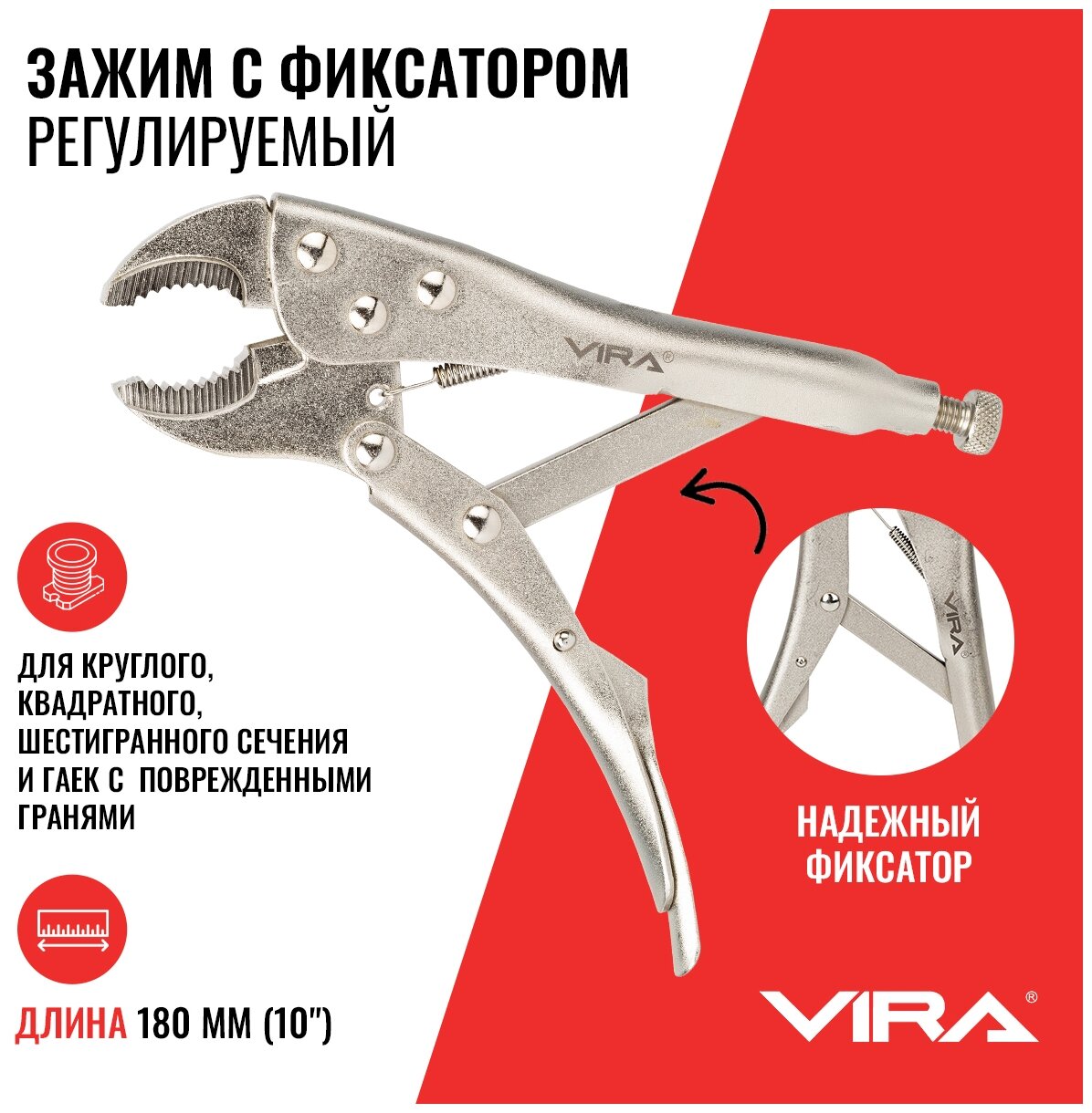 Клещи зажимные с фиксатором регулируемые 180 мм VIRA