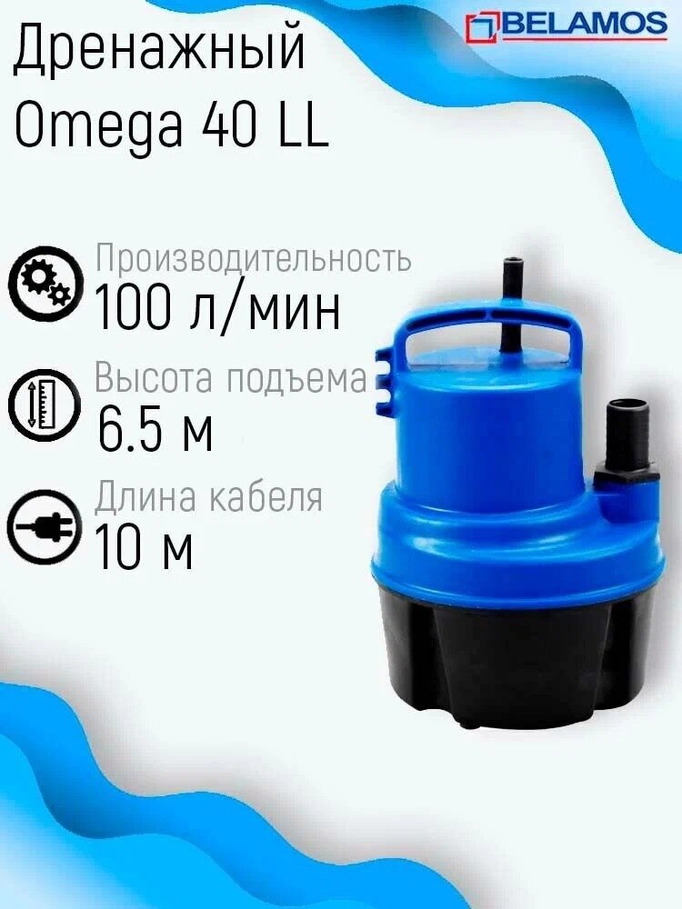 Насос дренажный Belamos Omega 40 LL - 0,40 кВт (1x230 В, Hmax 6,5 м, Qmax 100 л/мин, кабель 10м)