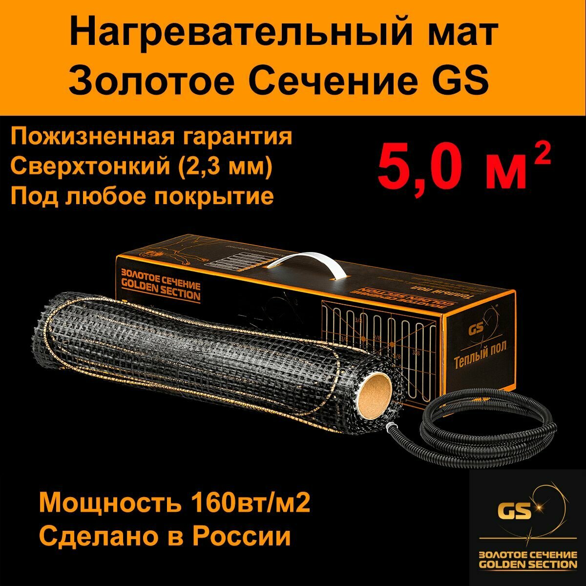 Нагревательный мат "золотое сечение" GS-800 Вт-5.0 м.кв.