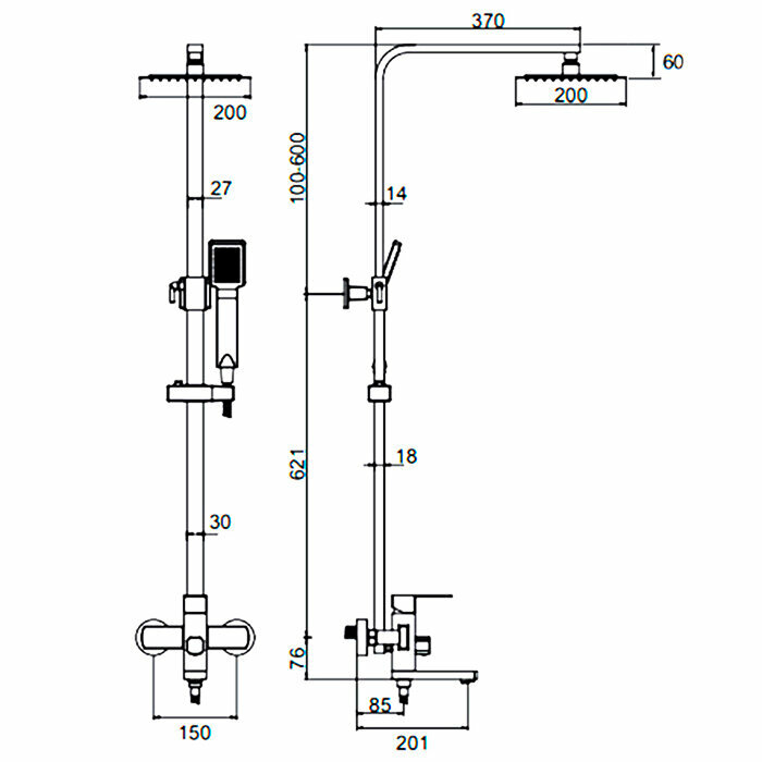 | Комплектация | смеситель - 1 шт. / душевая стойка - 1 шт. / верхний душ - 1 шт. / душевая лейка - 1 шт. / душевой шланг - 1 шт. / держатель для душевой лейки - 1 шт. / настенный держатель - 1 шт. / отражатели - 2 шт. / эксцентрики - 2 шт. |