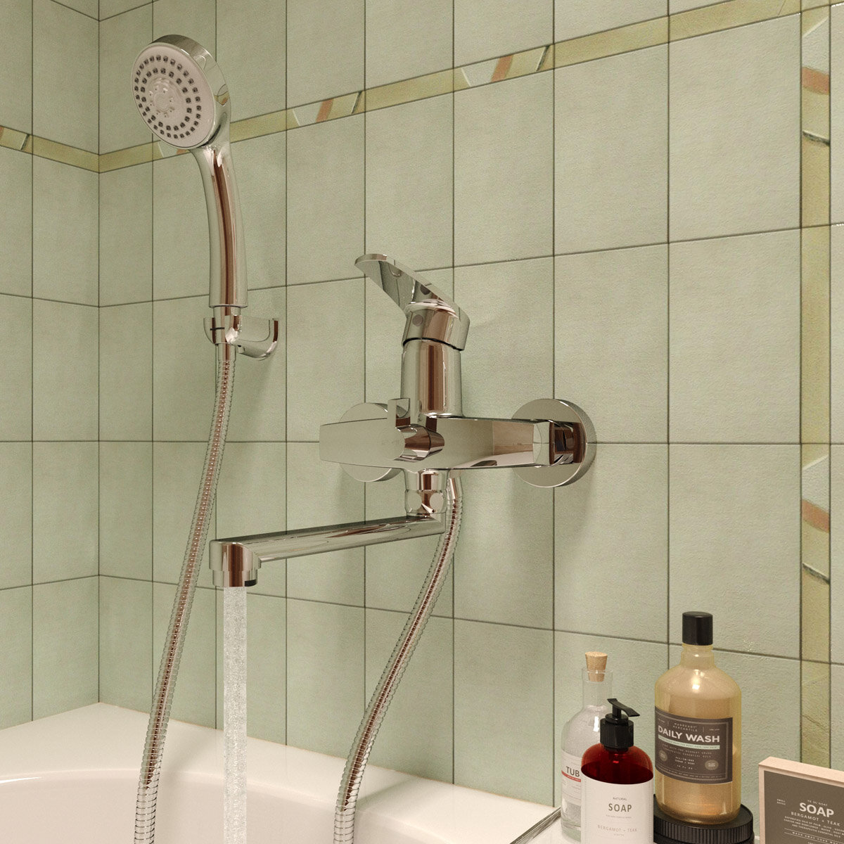 Смеситель для ванной однорычажный с душевым комплектом
