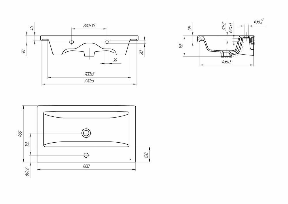 | Отверстия под смеситель | 1, расположение в центре |