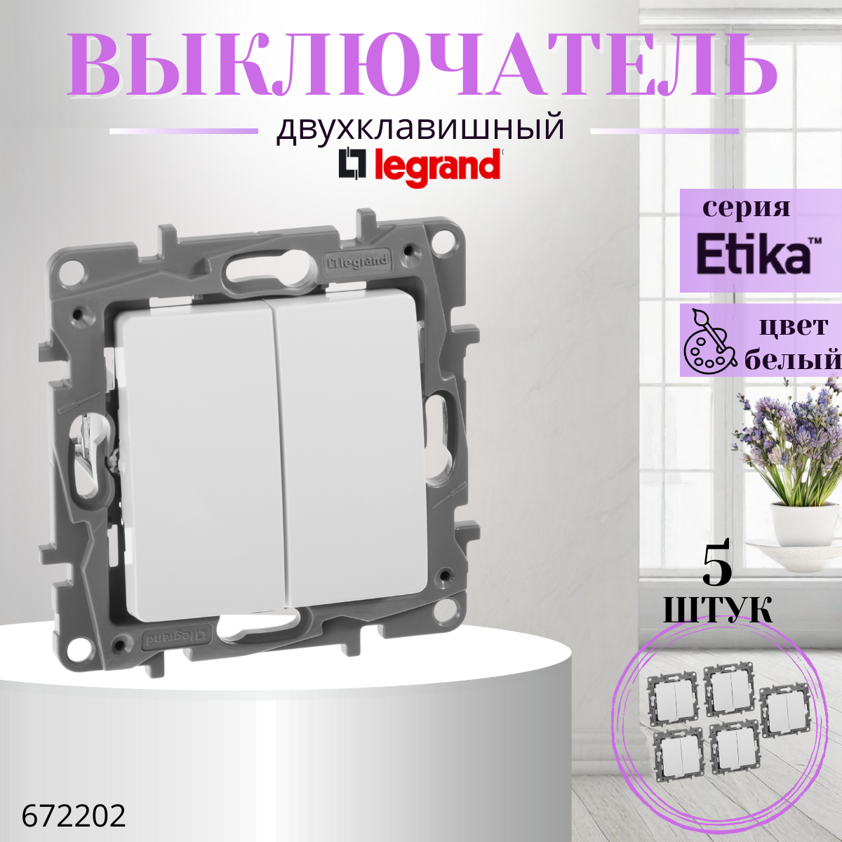 Выключатель двухклавишный Legrand Etika 672202 10 А 250В белый (комплект 5 шт)