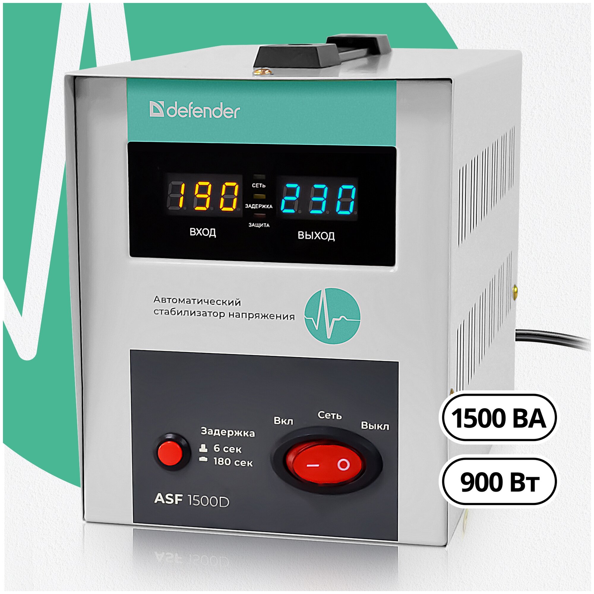 Стабилизатор напряжения Defender ASF 1500D напольный 900 Вт, 2 розетки