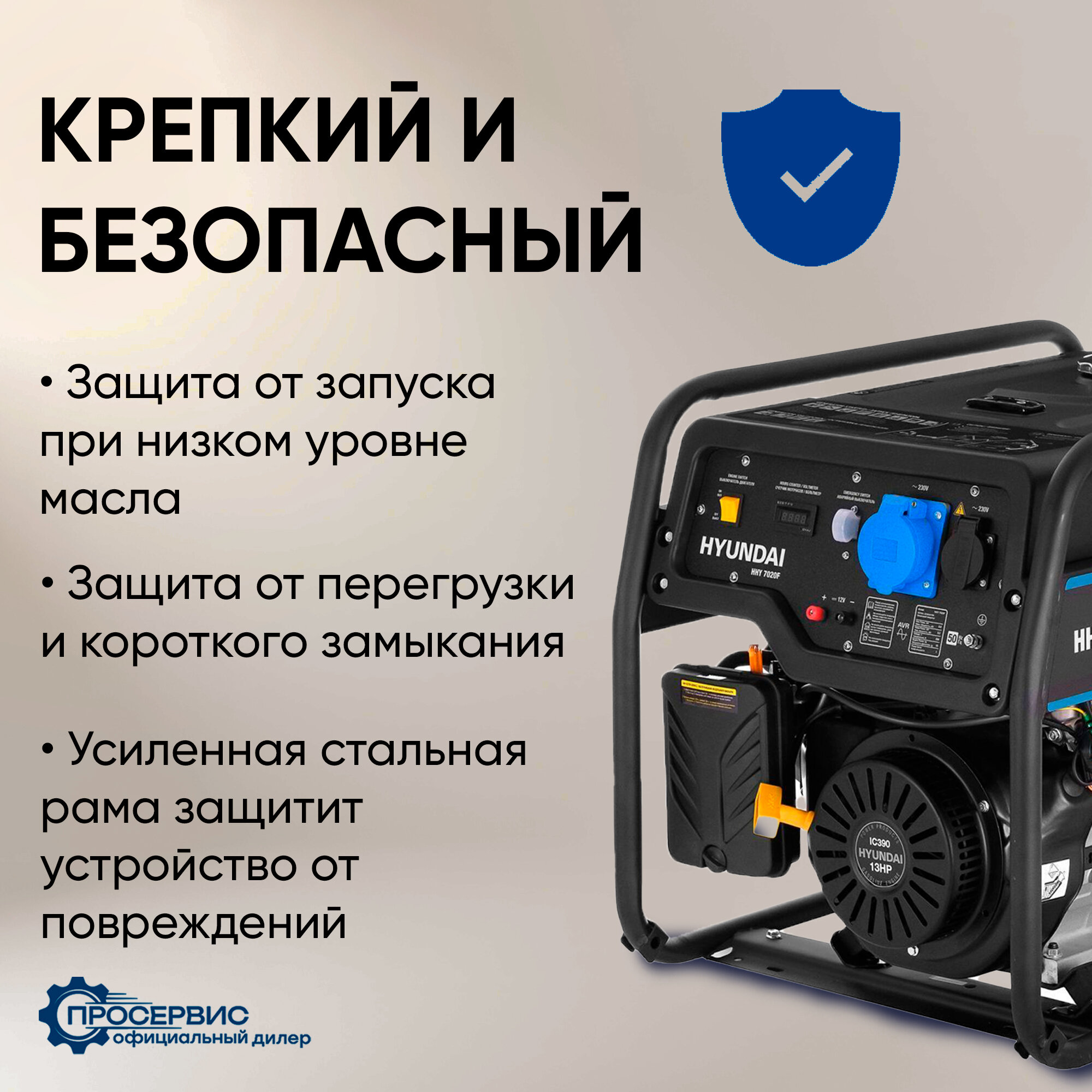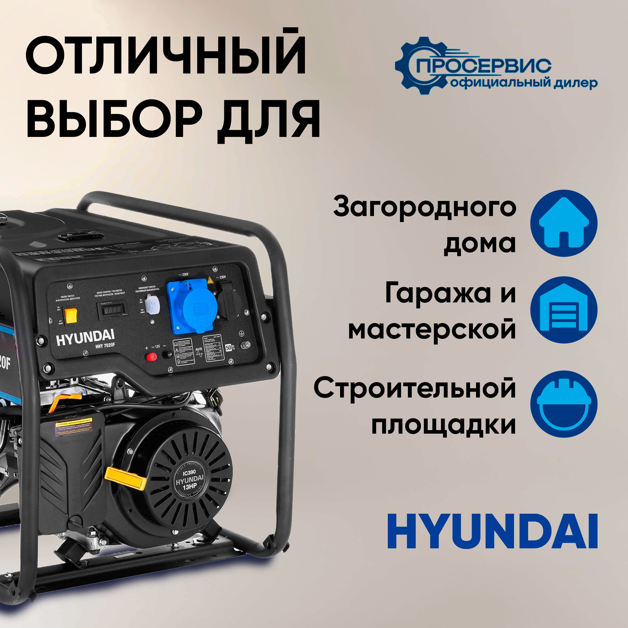 Бензиновый генератор HYUNDAI HHY 7020F, 230 В, 5.5кВт