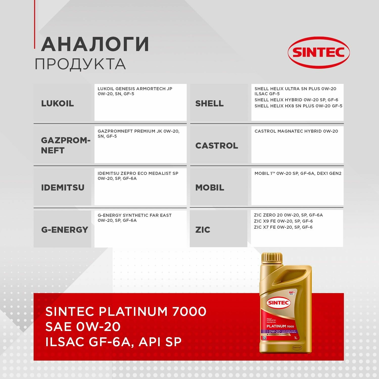 Сохранить801985 Масло моторное SINTEC PLATINUM SAE 0W-20 API SP, ILSAC GF-6 1л интересное: