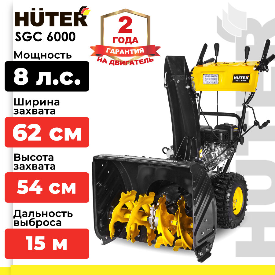 Снегоуборщик HUTER SGC 6000, 8 л.с., ковш 62х54см, 6 вперед/2 назад