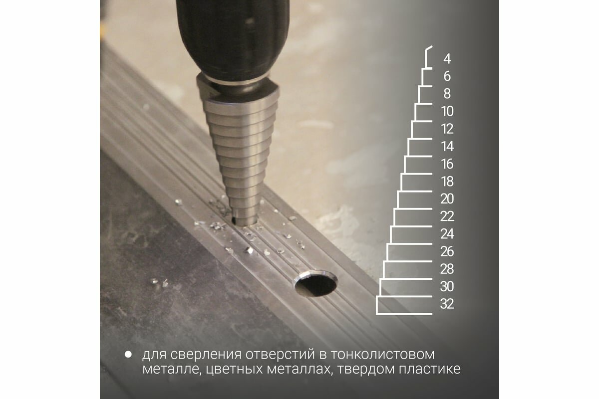 СохранитьVIRA Сверло ступенчатое 4-32 мм (шаг 2мм) 551432 интересное: