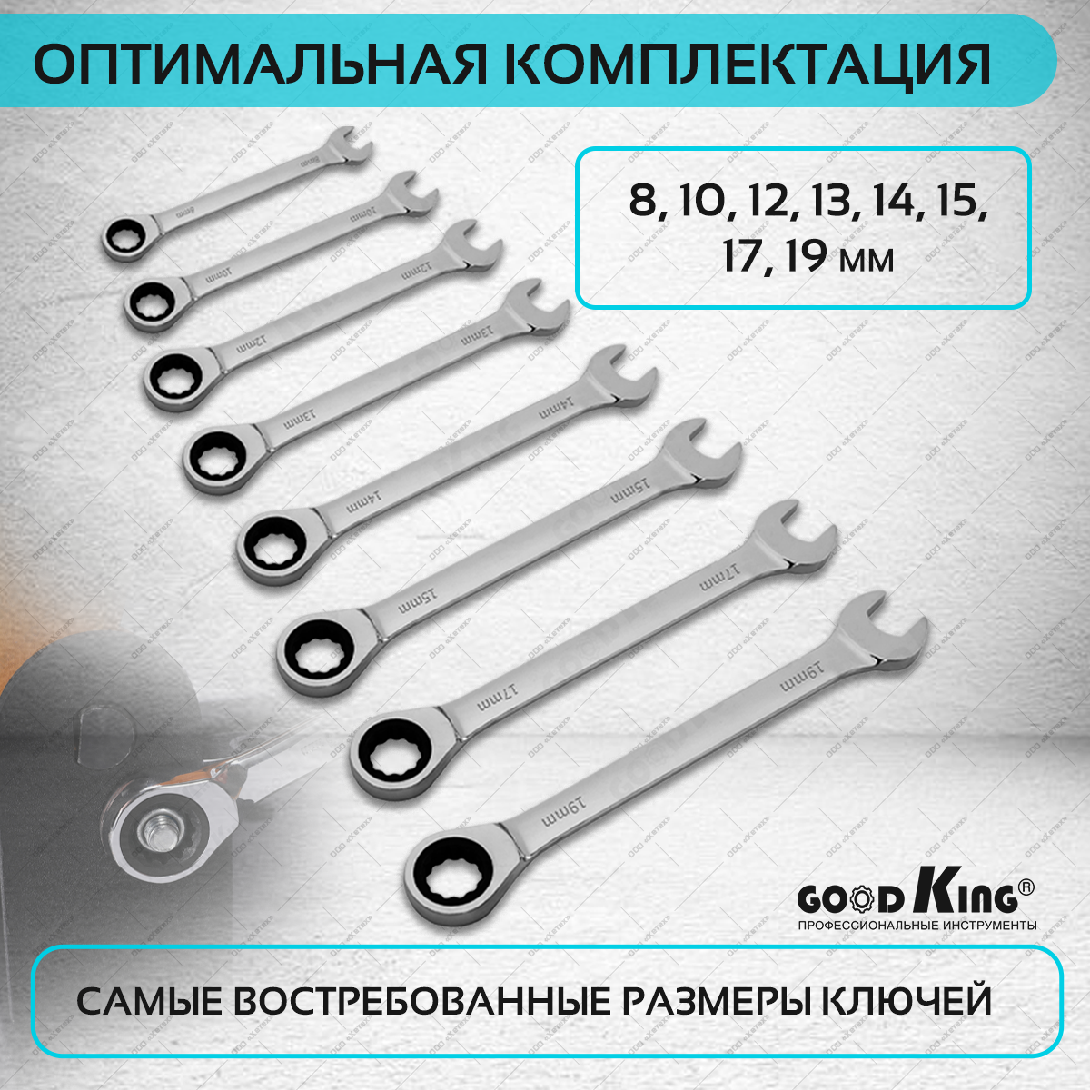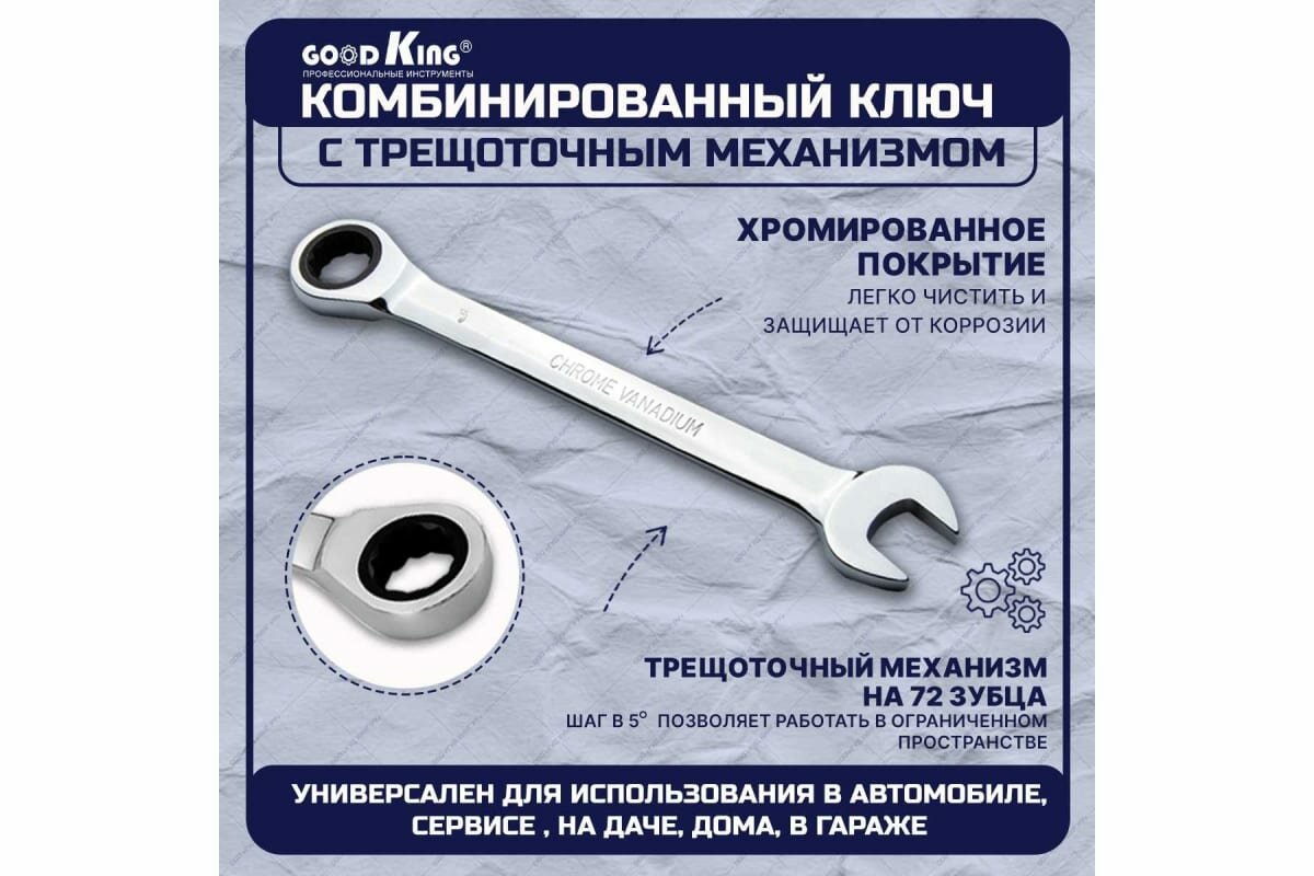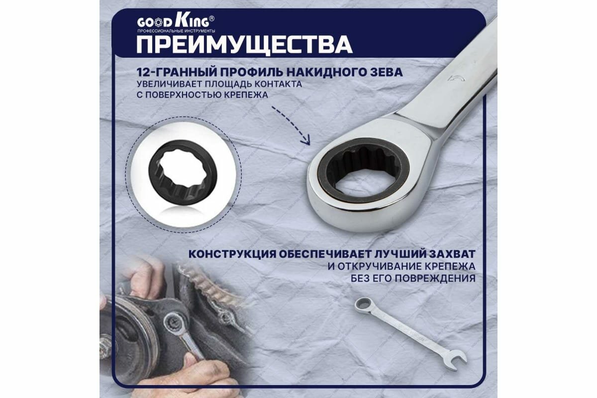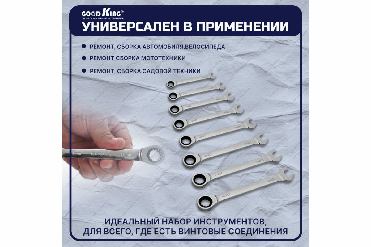Набор комбинированных трещоточных ключей GOODKING TKK-10008 интересное: