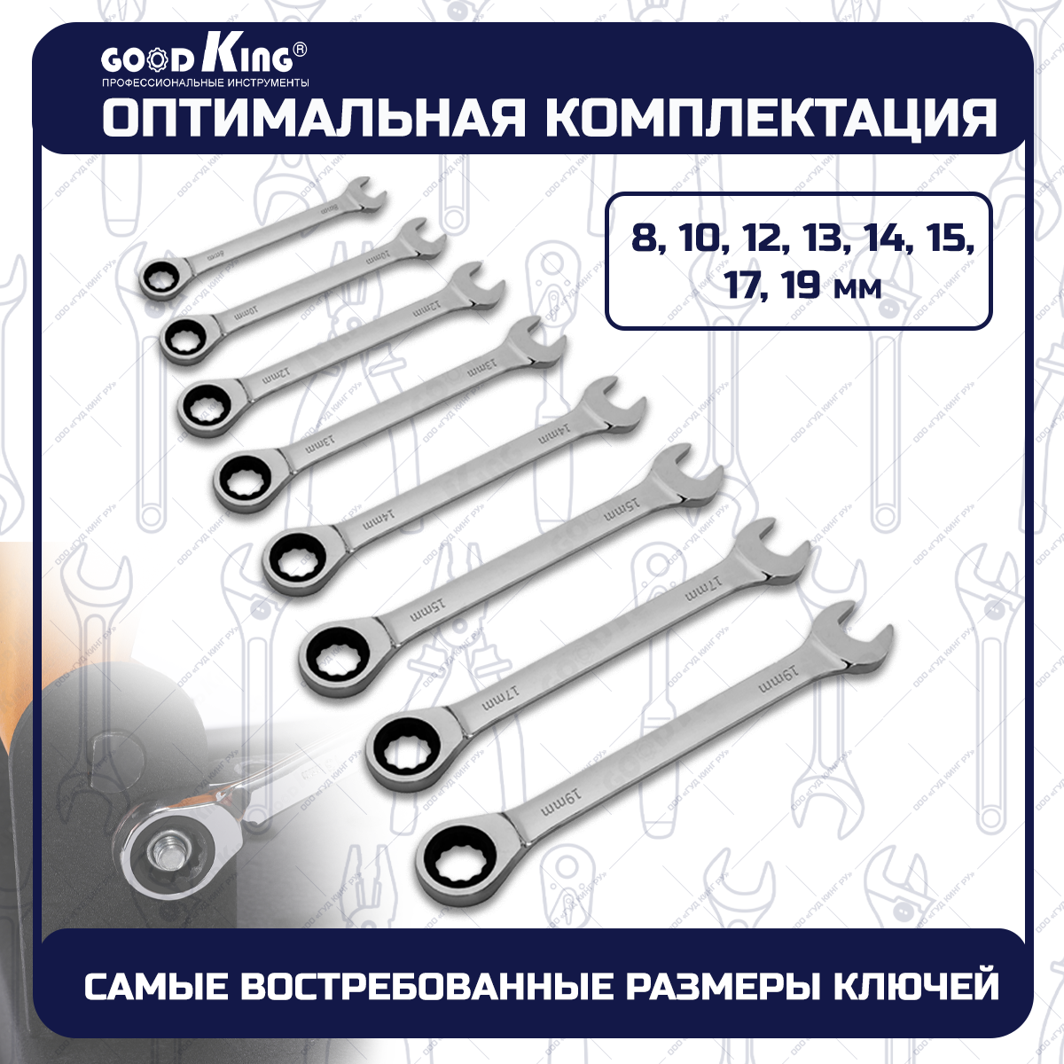 GOODKING Набор ключей комбинированных трещоточных 8 предметов TKK-10008