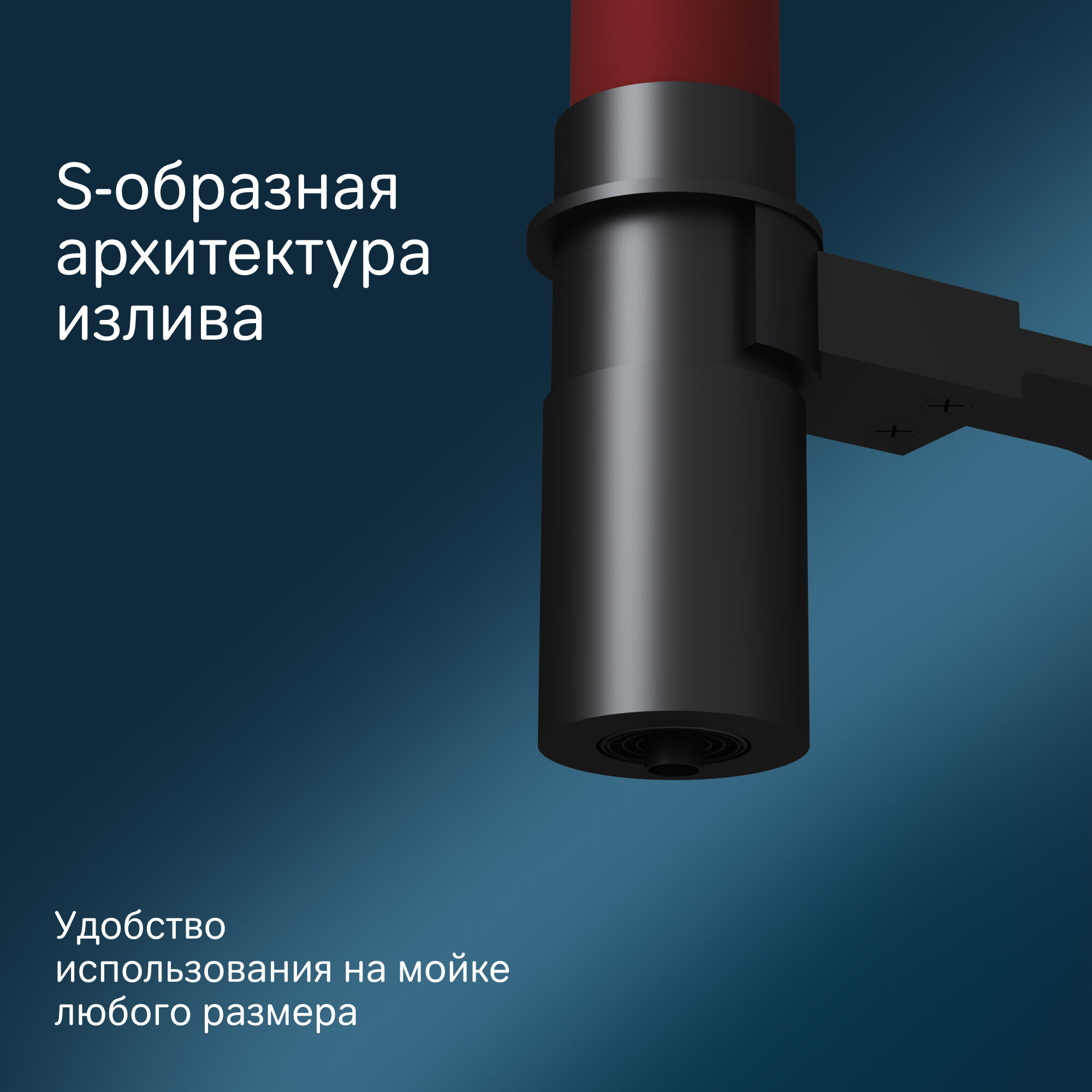 Купить Смеситель для кухни AM.PM Like черный, с фильтром для питьевой воды, красный излив, технология Fresh Boost 2 в 1 управление одной ручкой, гибкий излив, латунь