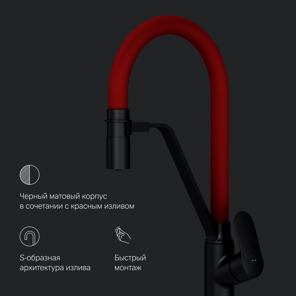 Смеситель для кухни AM.PM Like F8007828 Черный матовый Красный