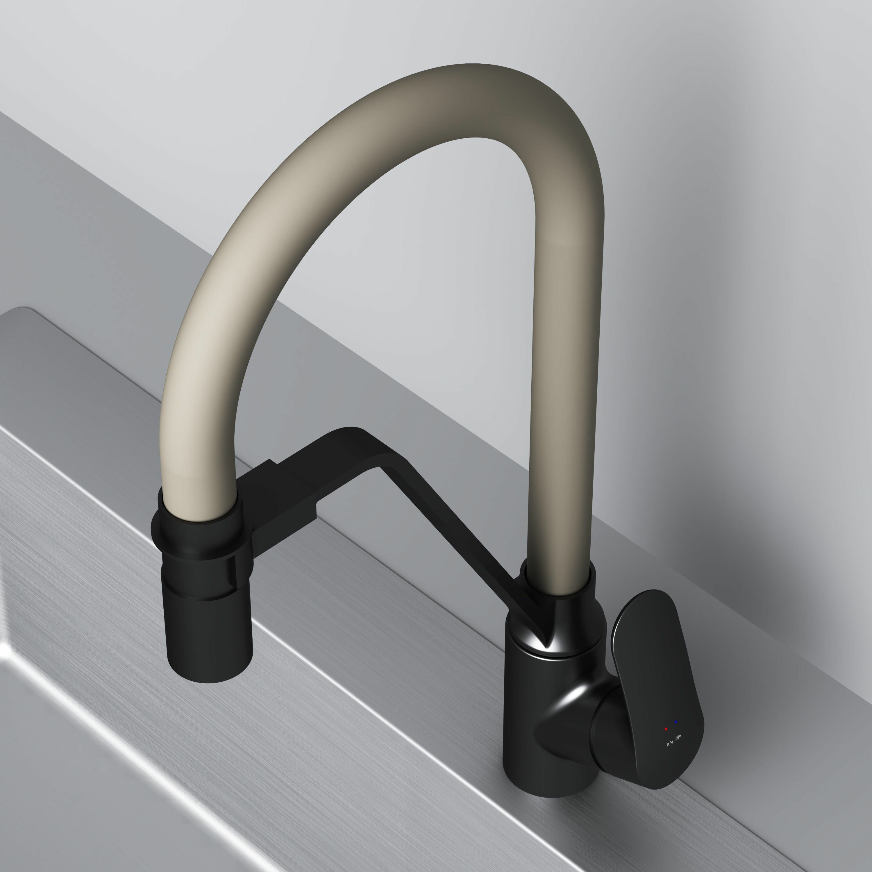 AM.PM Смеситель AM.PM F8007826 Like, для кухни с каналом для питьевой воды/гибким изливом, черный/бежевый