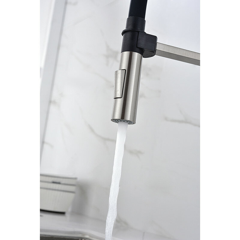 Купить Кухонный смеситель с гибким изливом Paulmark HALT, магнитная фиксация эластичного излива, режимы струя / душ, однорычажный, латунь, на мойку / столешницу, никель, Ha214021-NI