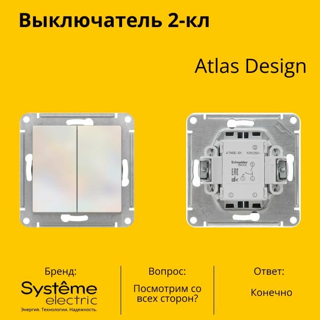 Ниже Вы можете прочитать отзывы на Выключатель электрический Schneider Electric (Systeme Electric) Atlas Design 2-клавишный, 10А, 10 AX, Жемчуг ATN000451 - 2 шт., ознакомится с подробными характеристиками, посмотреть интересные обзоры и фотографии на Выключатель электрический Schneider Electric (Systeme Electric) Atlas Design 2-клавишный, 10А, 10 AX, Жемчуг ATN000451 - 2 шт..