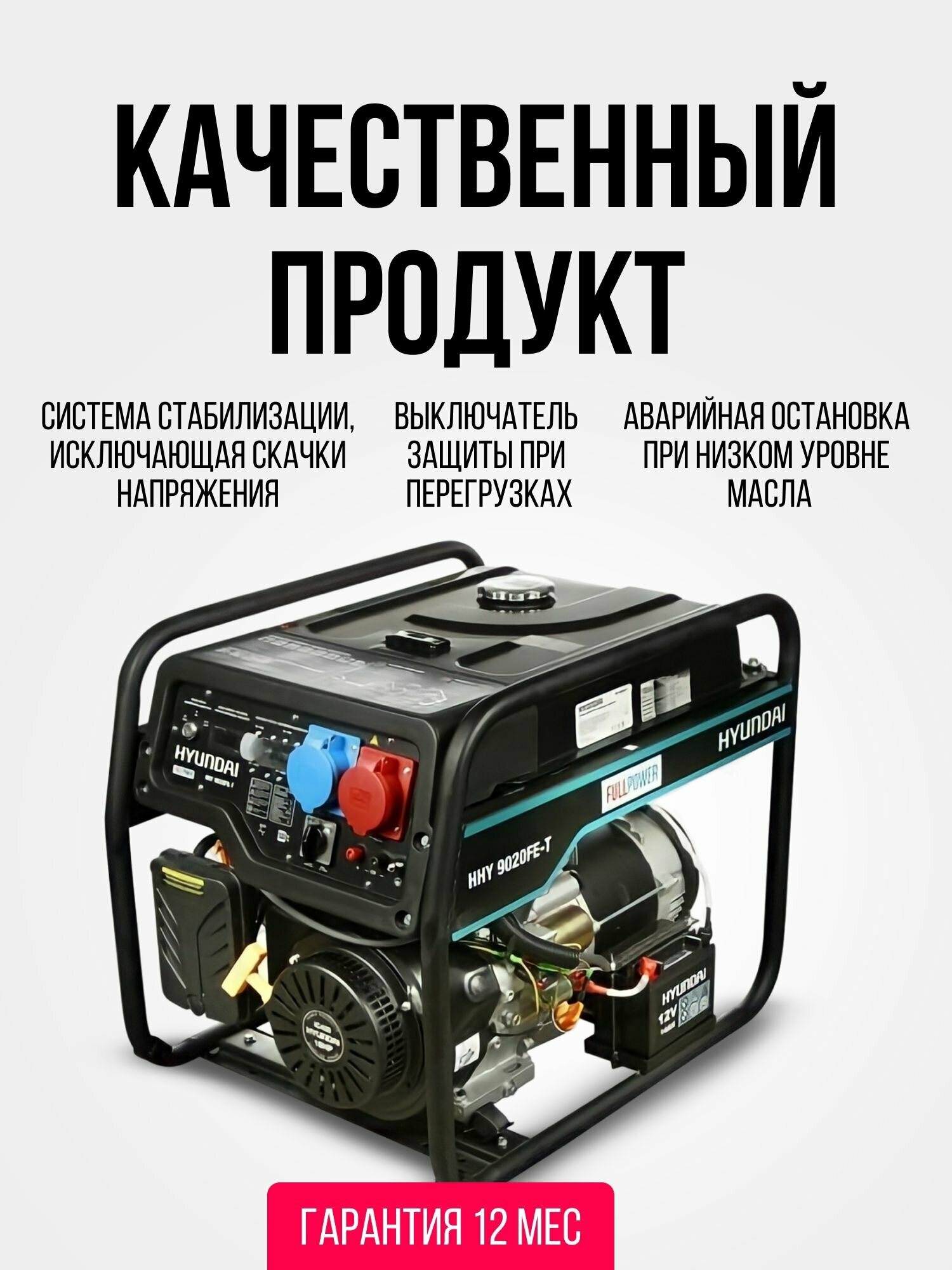 Бензиновый генератор HYUNDAI HHY 9020FE-T, 380/220/12 В, 6.5кВт