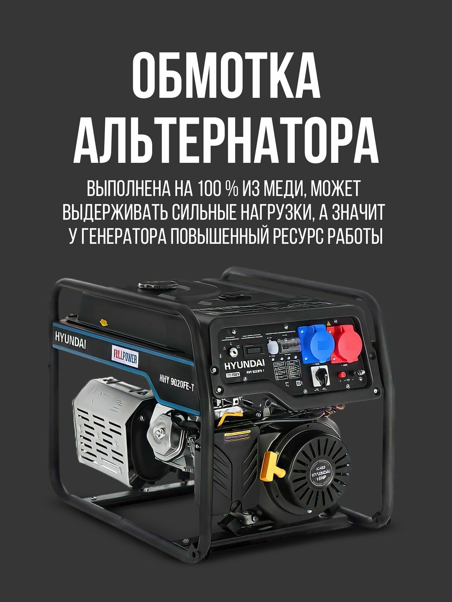 Генератор бензиновый Hyundai HHY 9020FE-T, 16 л.с, 6000 Вт
