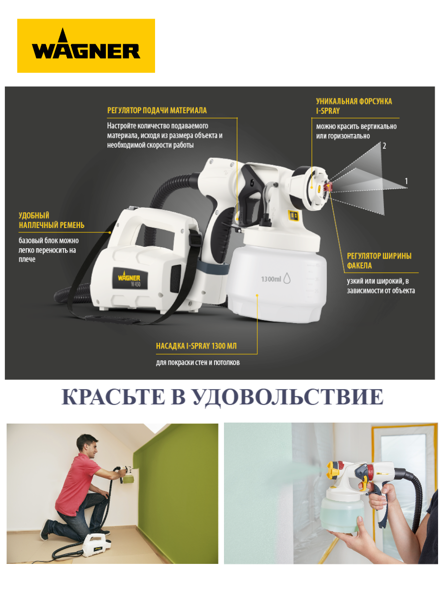 Краскопульт WAGNER W 450 для интерьерных работ интересное: