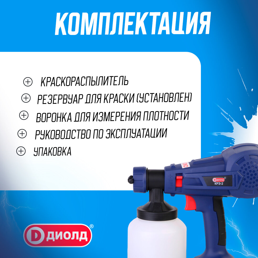 Краскопульт электрический диолд КРЭ-2 / краскораспылитель, 120 Вт, 800 мл, до 300 мл/мин, российский производитель