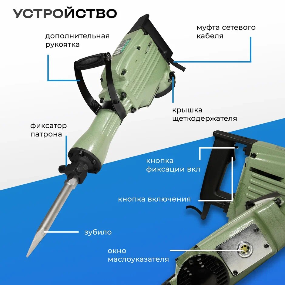 СохранитьОтбойный молоток электрический / Отбойник для долбления / Отбойный молоток ELECTROLITE ОМ 65 EL ( 2200 Вт, 65 Дж, металлический корпус, пика и лопатка в комплекте, кейс ) интересное: