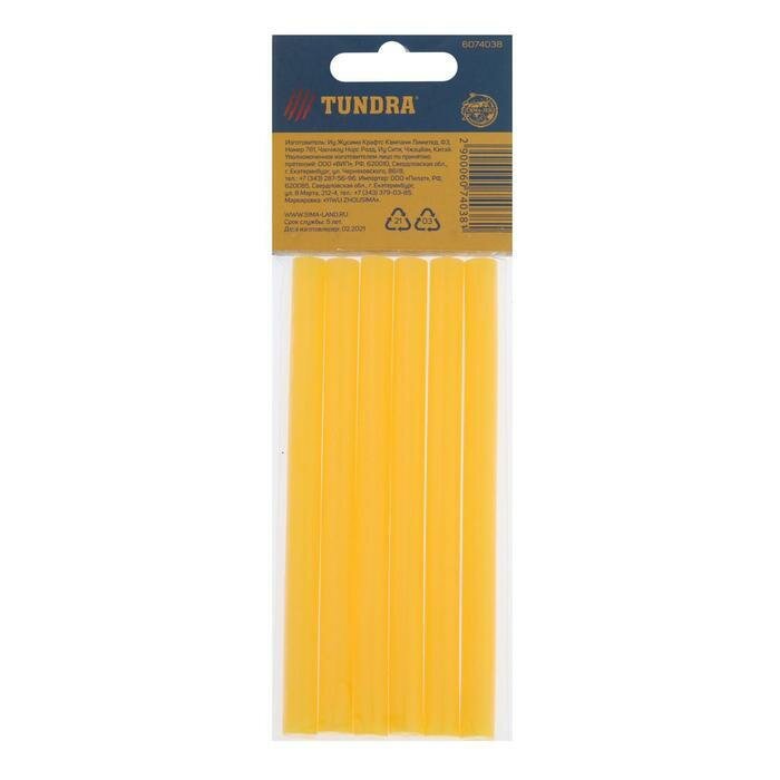 Клеевые стержни тундра, 7 х 100 мм, желтые, 6 шт.
