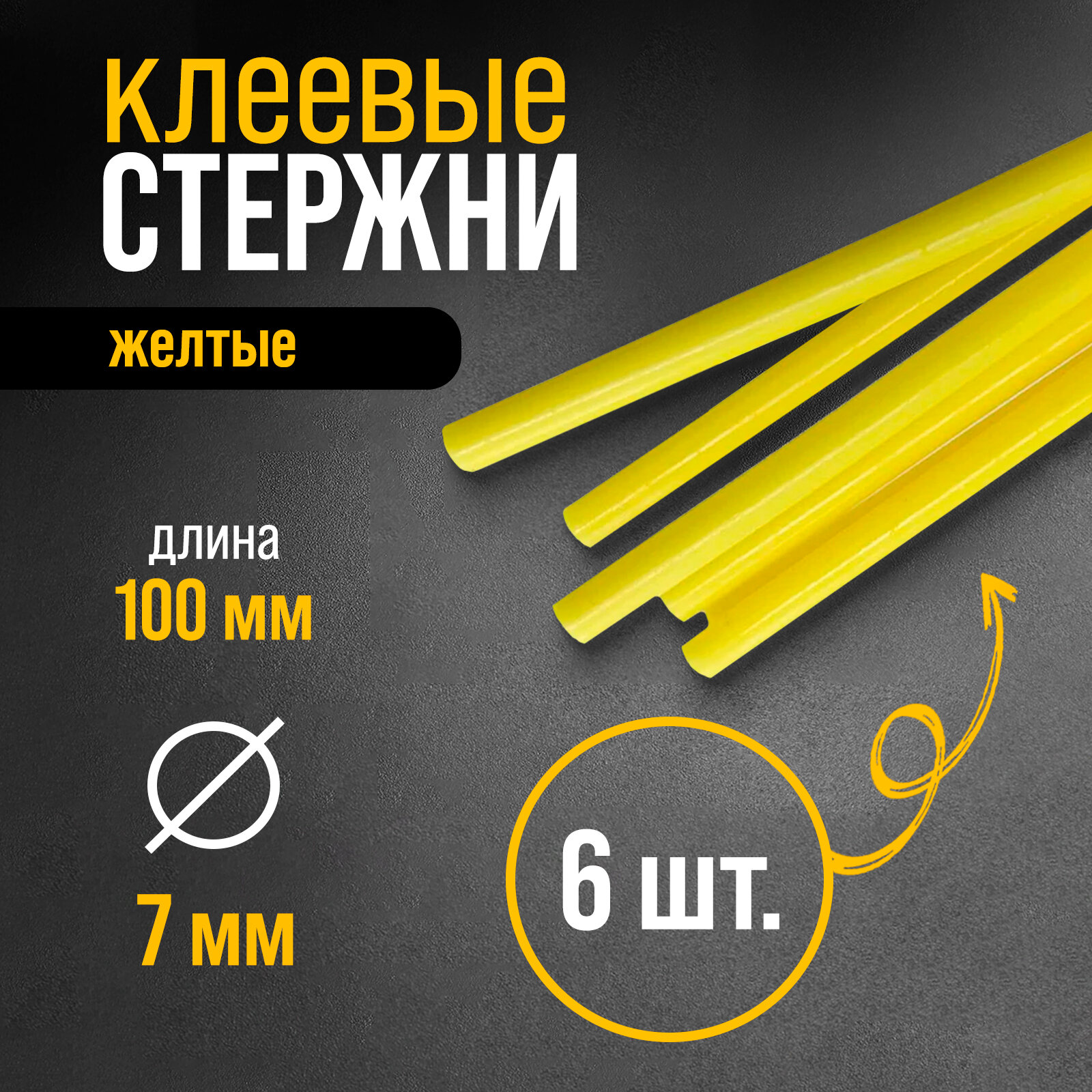 Клеевые стержни 7 x 100 мм, желтые, 6 шт.