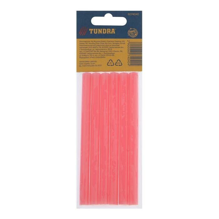 Тундра Клеевые стержни TUNDRA, 7x100 мм, розовые, 6 шт.