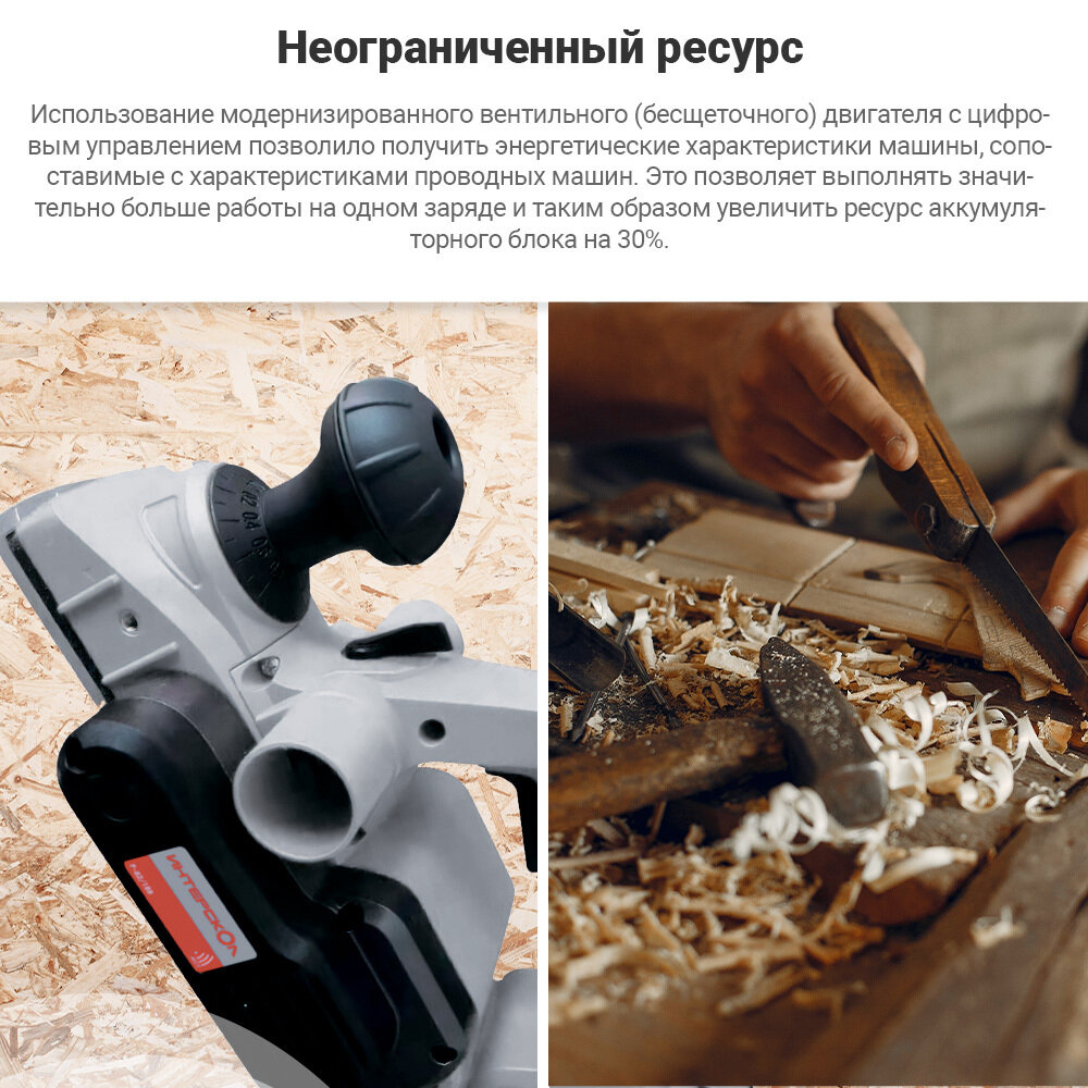 Бесщеточный аккумуляторный рубанок ИНТЕРСКОЛ РА-82/18В 694.1.0.70, АПИ, без АКБ и ЗУ