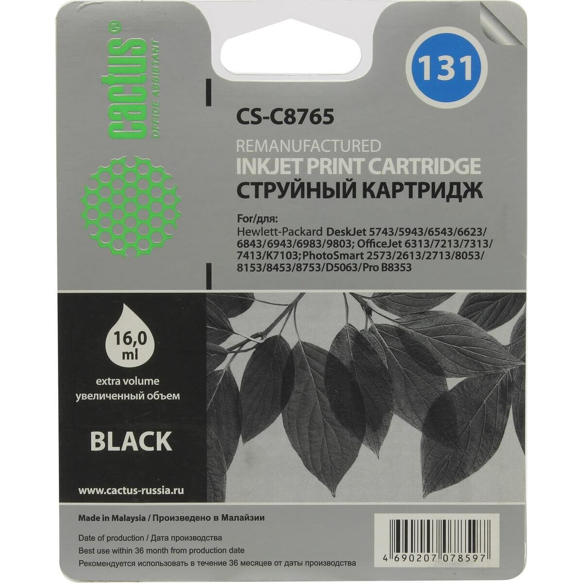 Картридж Cactus CS-C8765 №131 черный, для HP DJ 5743/5943/6543/6623/6843/6943/6983/9803/7213/7313/7413/K7103/PS 2573/2613/2713/8053/8153/8453/8753/D5063/Pro B8353