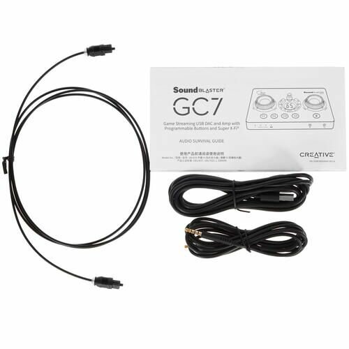 | Дополнительная информация | комплект поставки 1 Sound Blaster GC7, 1 кабель-переходник с USB-C на USB-A, 1 оптический кабель, 1 кабель 3,5-мм для AUX-входа. |