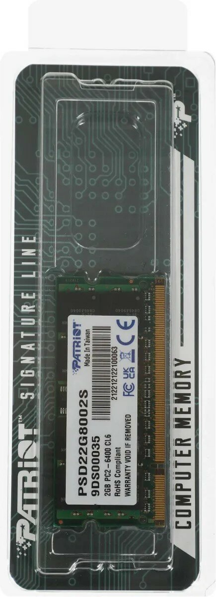 Оперативная память Patriot PSD22G8002S DDR2 - 1x 2ГБ 800МГц, для ноутбуков (SO-DIMM), Ret