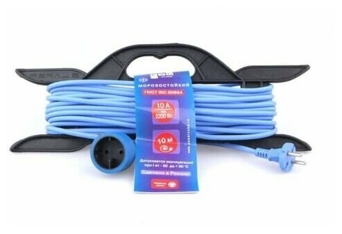 Удлинитель бытовой 1 гнездо, 10 м, ПГА, 2х1, без заземления, 10 А, на рамке, морозостойкий, PowerCube