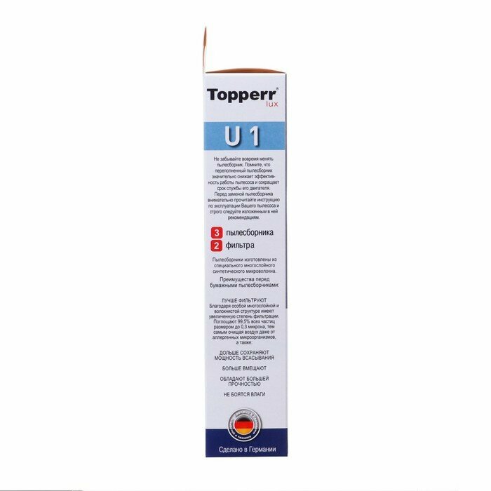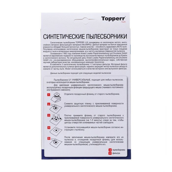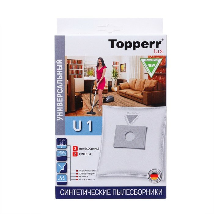 Купить Синтетический пылесборник Topperr Lux U 1 для любых пылесосов, 3 шт. + 2 фильтр