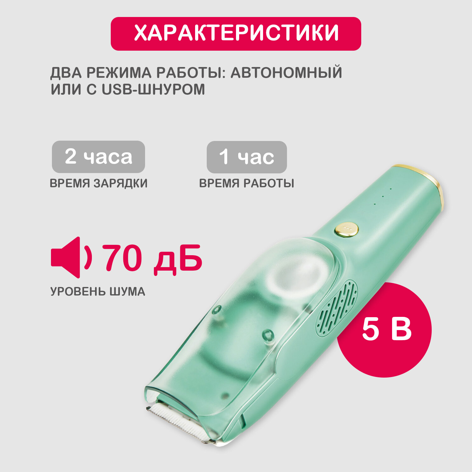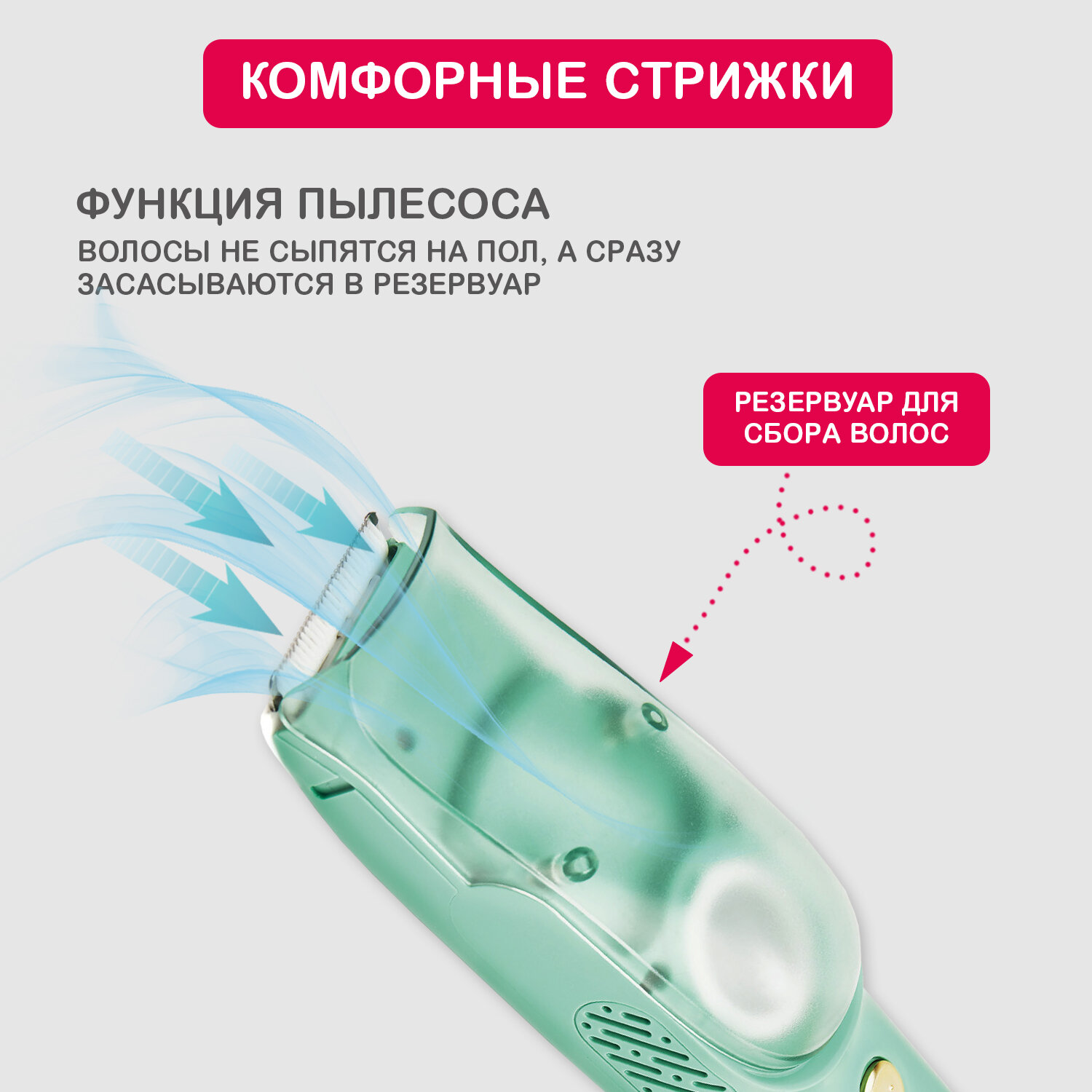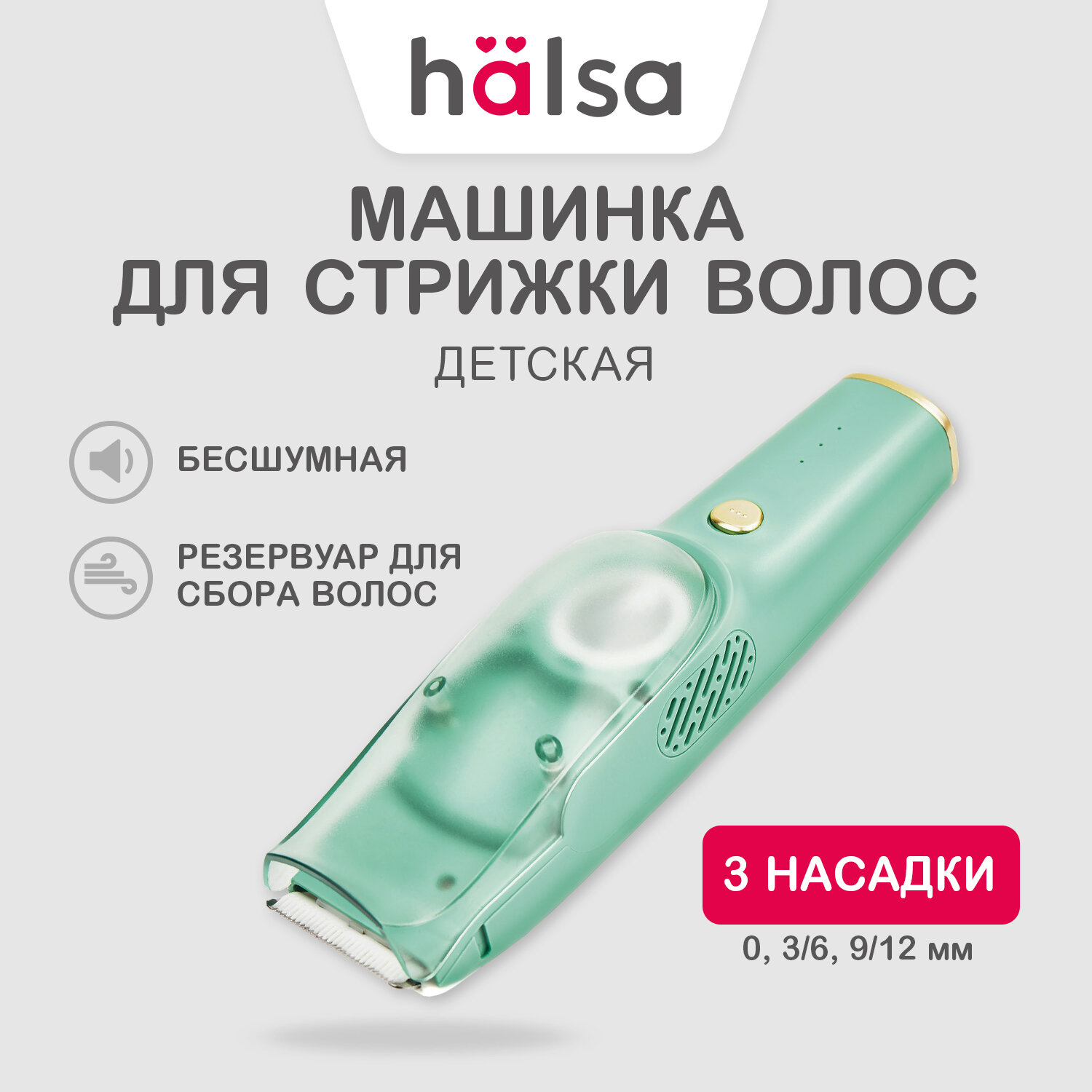 Водонепроницаемая детская машинка для стрижки волос HALSA HLS-967 зеленого цвета с вакуумной технологией сбора волос и контейнером , 5 Вт